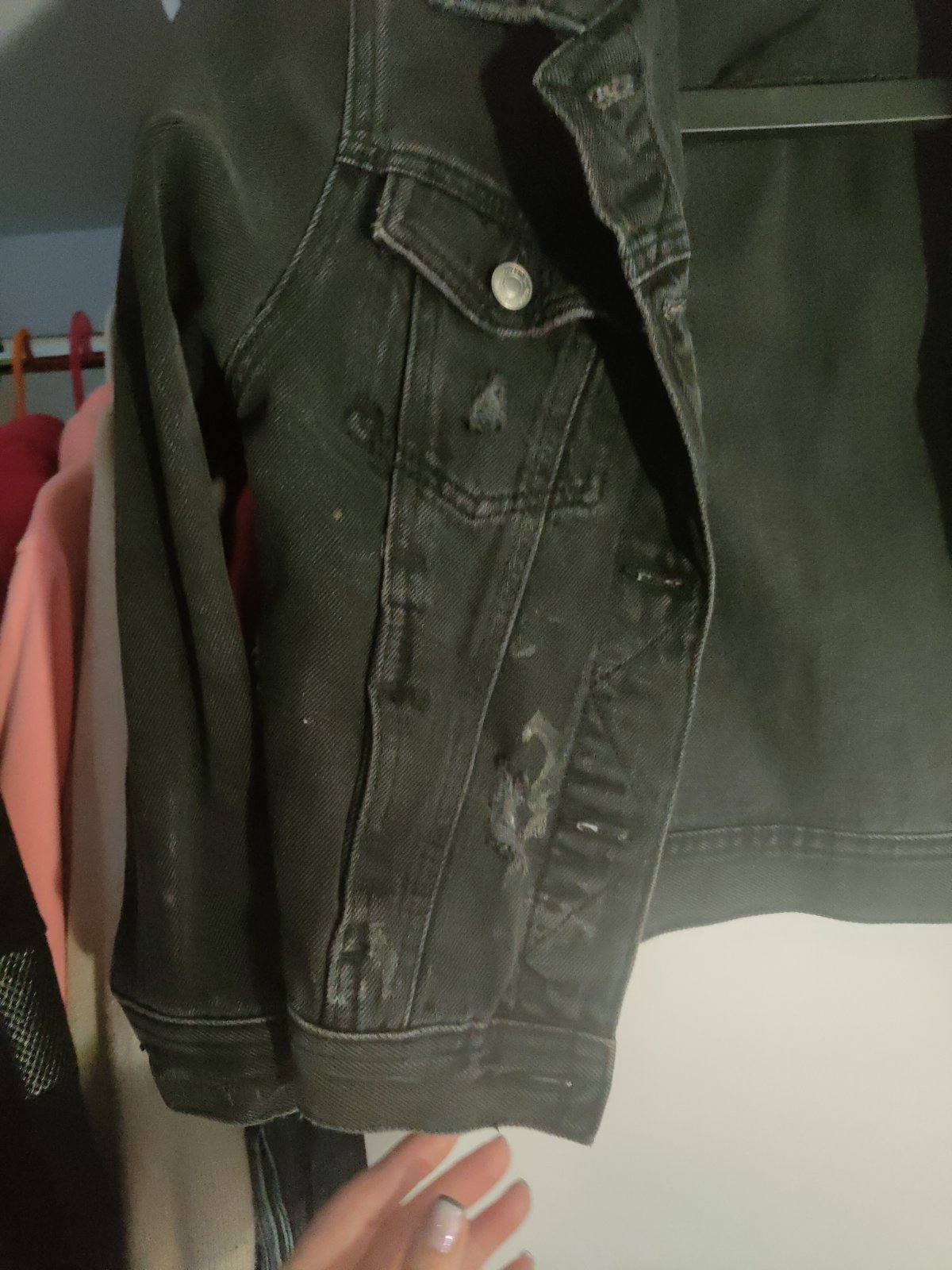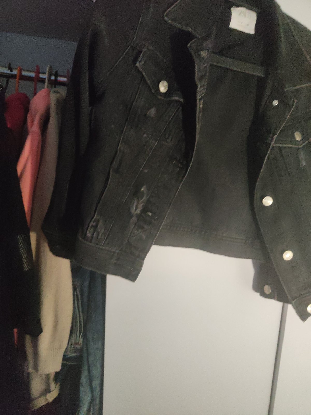 Bunda je cierna a dierami sedi na velkost 8 ;9 rokov veľkosť 134