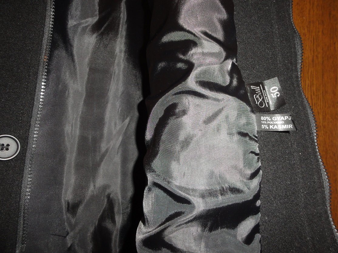 Vlnený kabát, dĺžka 85cm, šírka 64cm, rukáv 67cm, teplý, 80% vlna, na zips