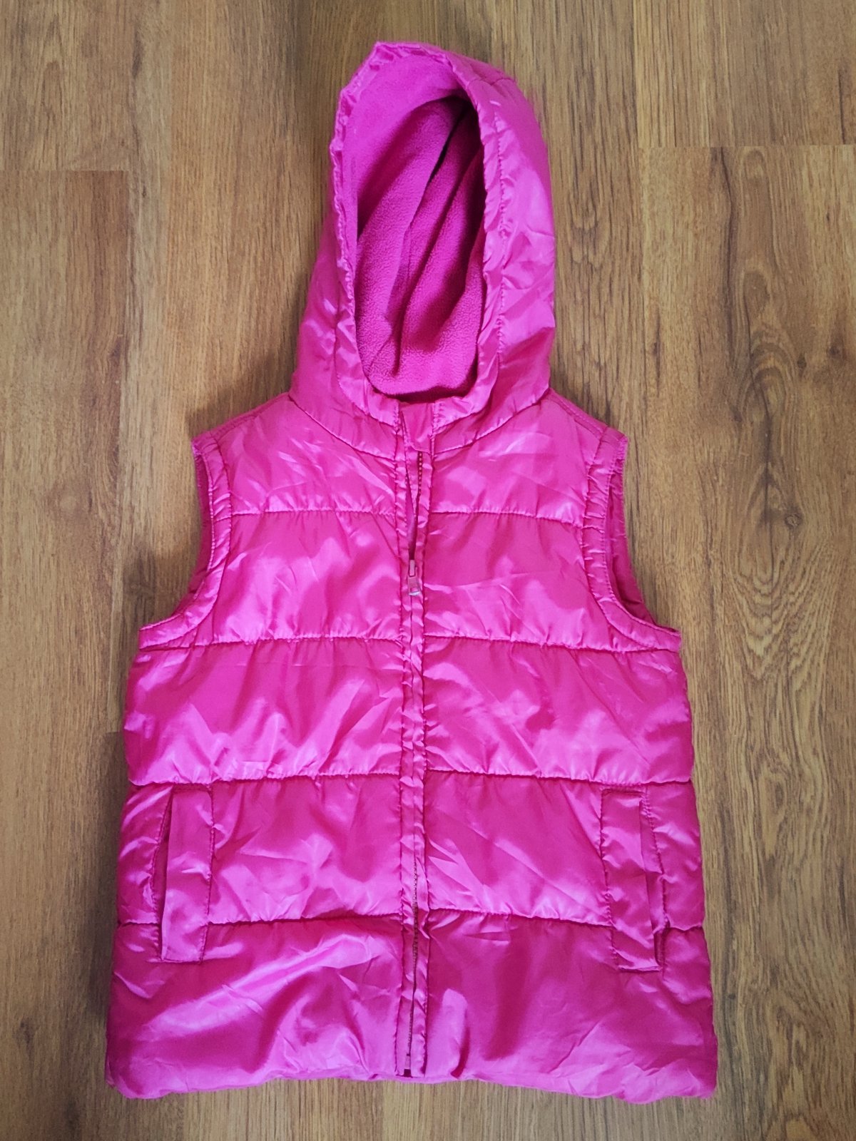 Par krat oblecena vesta, velk.116, ale tym ze je to predlzena vesta pod zadok tak dcera nosila po velk.128