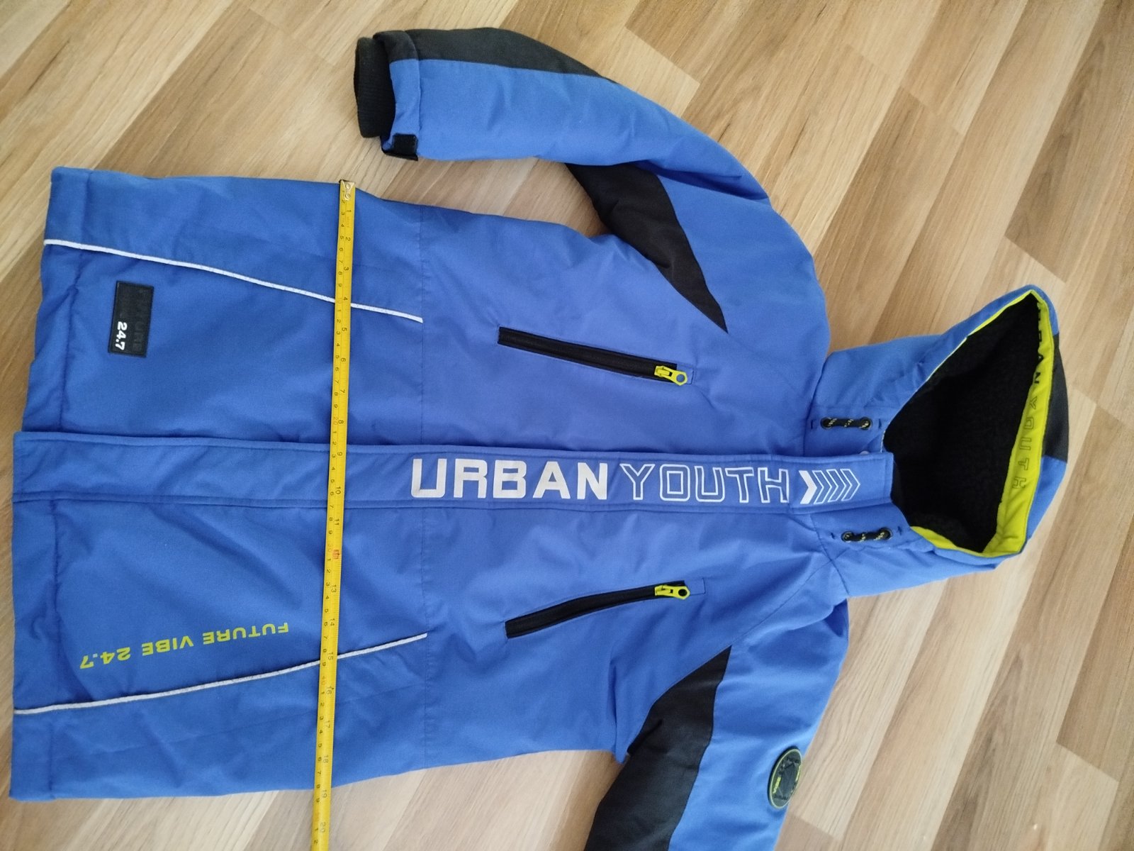Velmi tepla bunda, podsita flisom, super kapucna co nepada, bezchybny stav. Kupovana v Tescu. Velkost 146/152. Jedina chybicka male zatrhnutie na zadnej strane, skoro nevidiet.