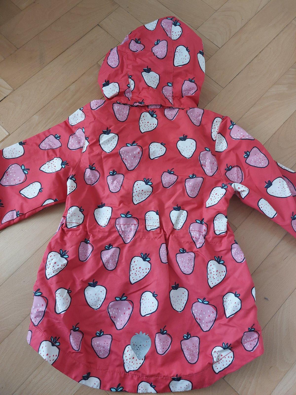 Skvela bundicka/vetrovka na prechodne obdobie. Ma predlzeny zadny diel, stahovanie v pase, odnimatelnu kapucnu. Pouzivanie je vidno na vnutornej strane kapucne (su tam male zmolky).