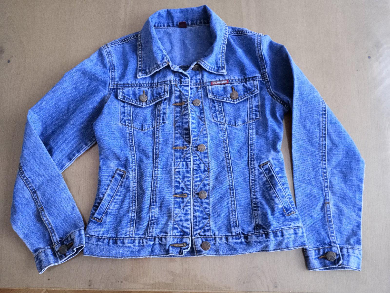 Dĺžka bundy 54 cm, rukáv 57 cm, šírka meraná pod pazuchami 41 cm, zachovalá, bez poškodenia