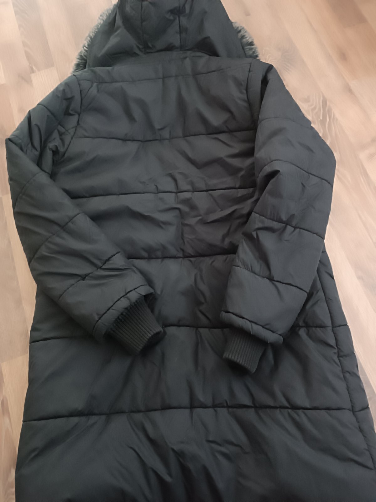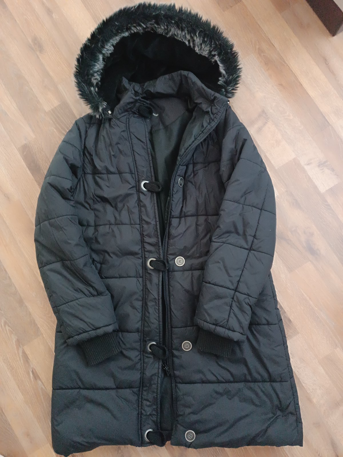 Čierna dámska bunda, dĺžka nad kolená, na zips, so zateplenou kapucňou