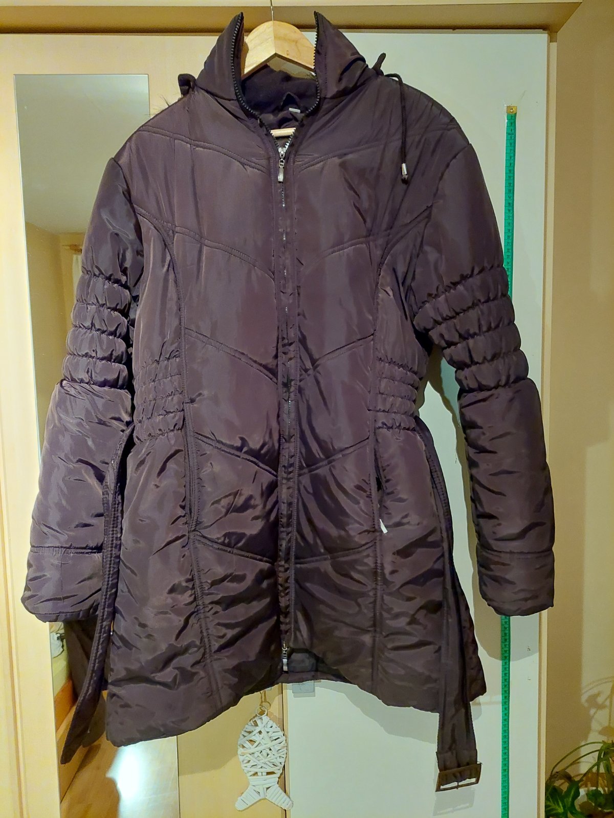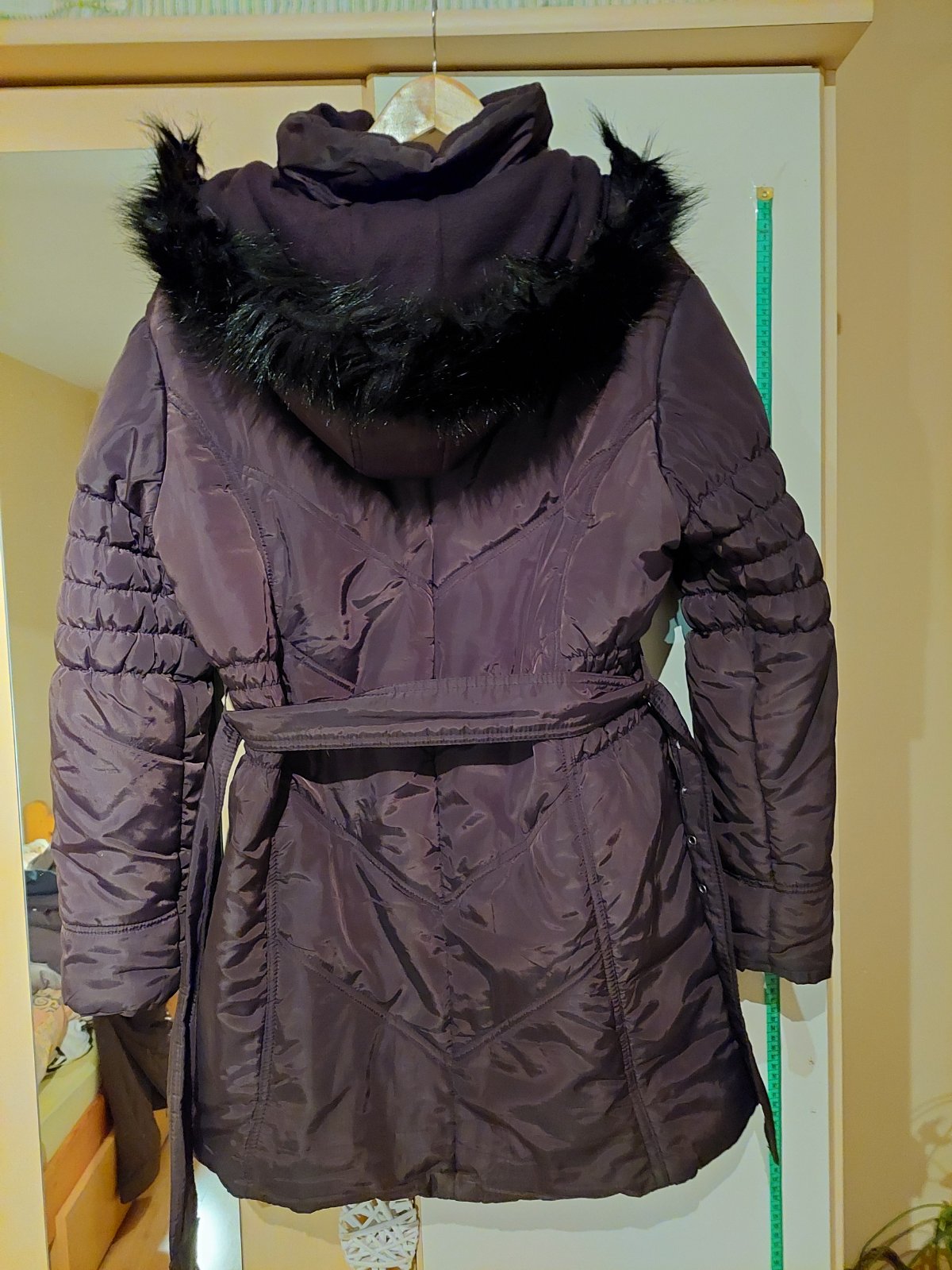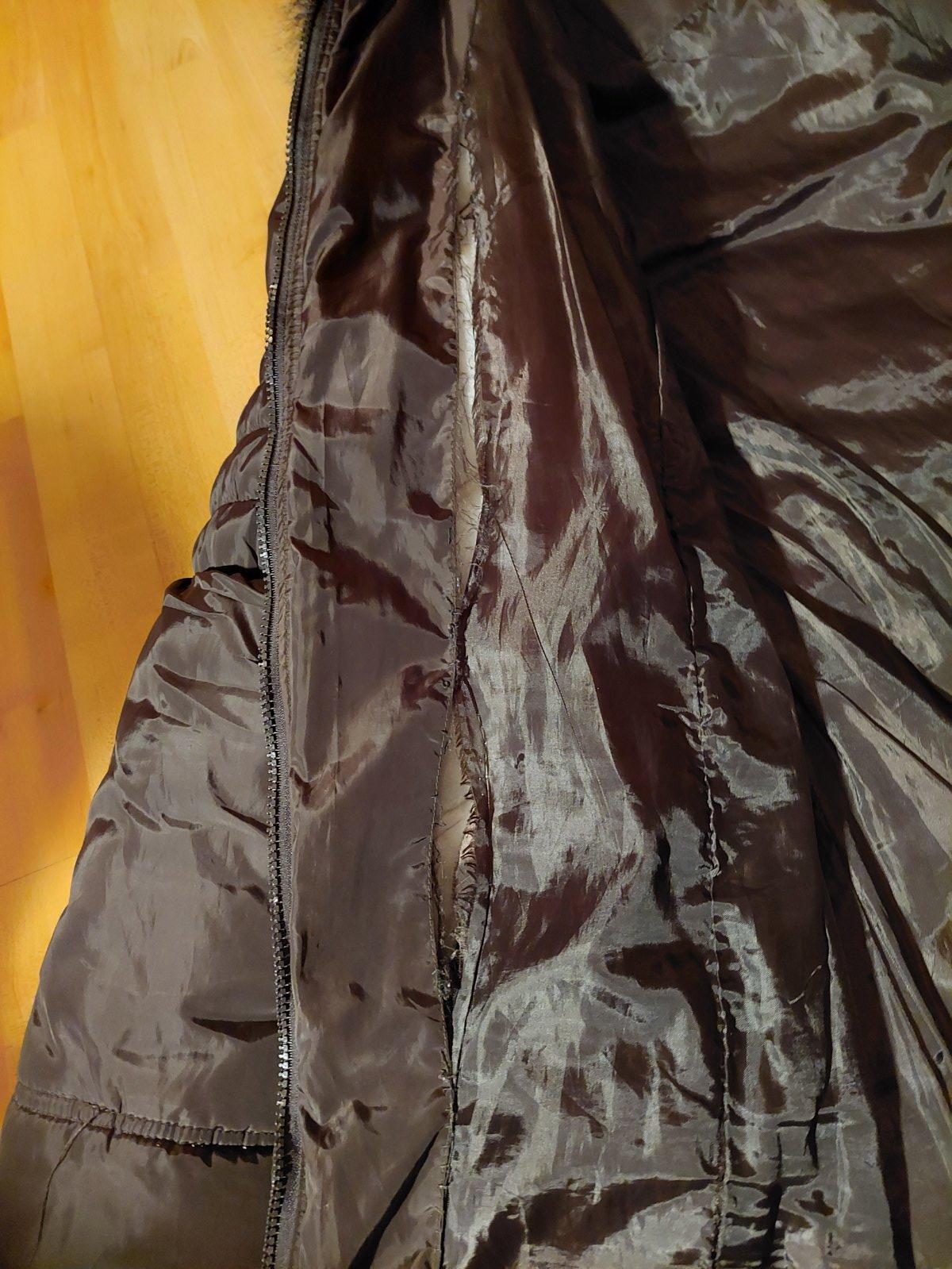 kožušinka sa dá z kapucne odopnúť, aj celá kapucňa sa dá odopnúť.. na jednej strane je rozpáraná podšívka - predposledná fotka