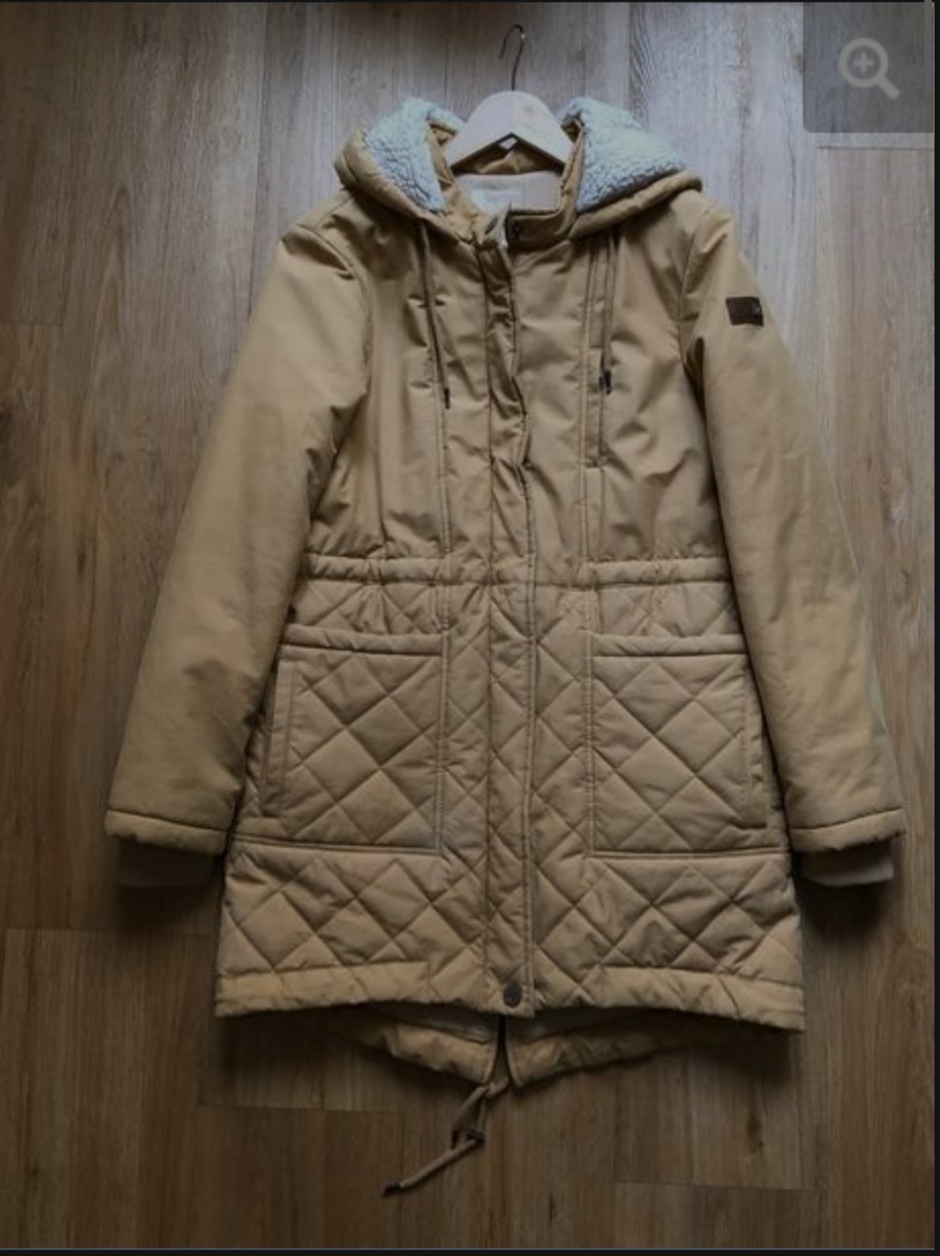 Krasna a tepla bundicka Roxy, dlha, krasne šitá, svetlejsia horcicova farba,