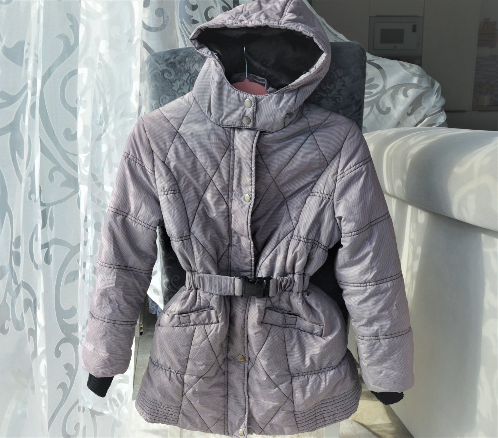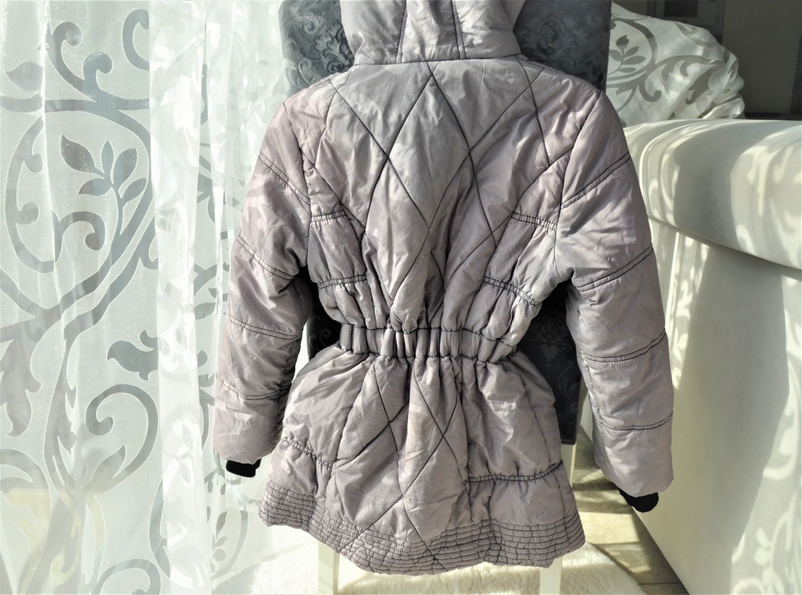 nosená menej,písané na 11/12 rokov-prešívaná,v páse elastická guma+ k bunde všitý opasok,dĺžka 68cm,šírka pod pazuchami 2 x43cm,dole šírka 2x55cm,rukáv od ramena 54cm...kuk aj na iné moje inzeráty