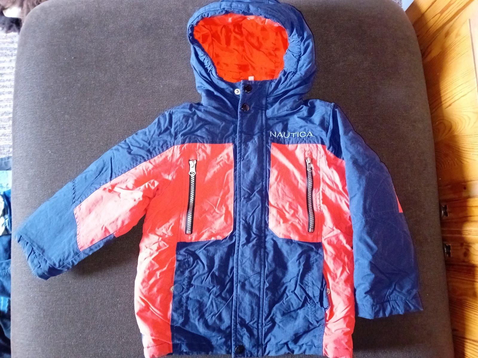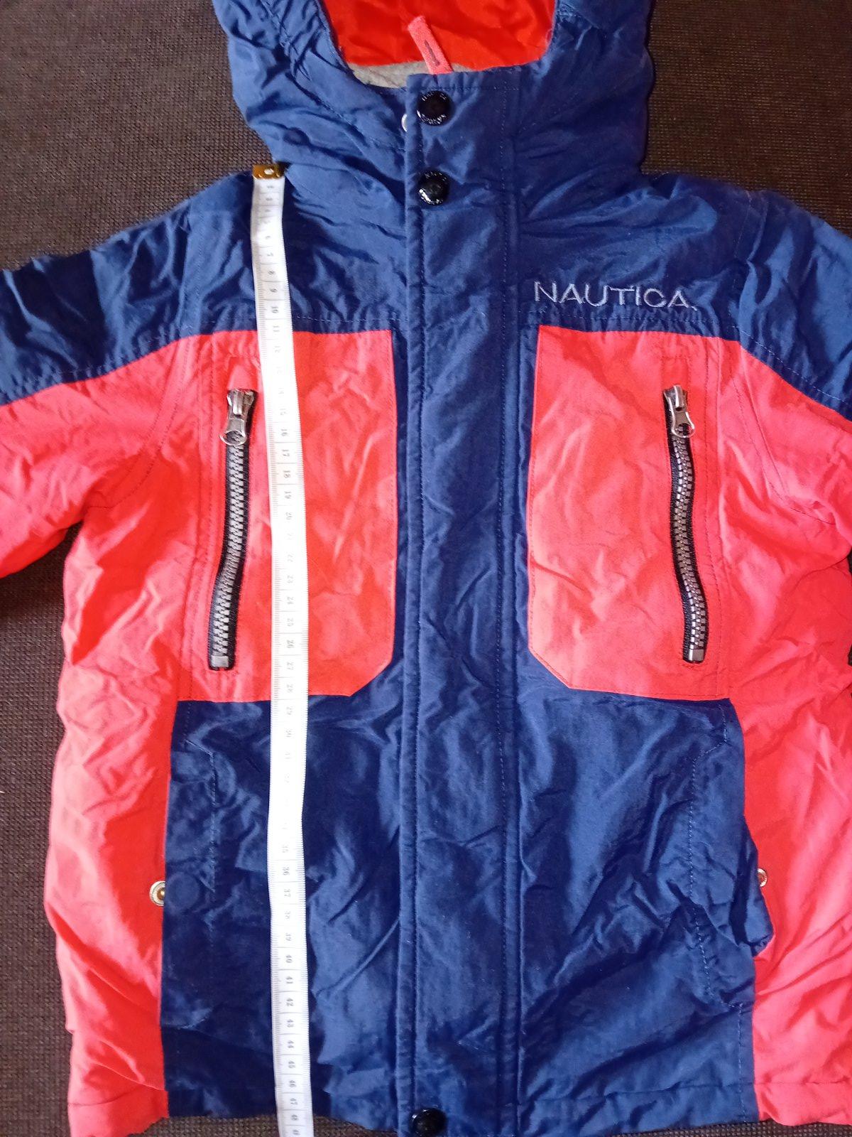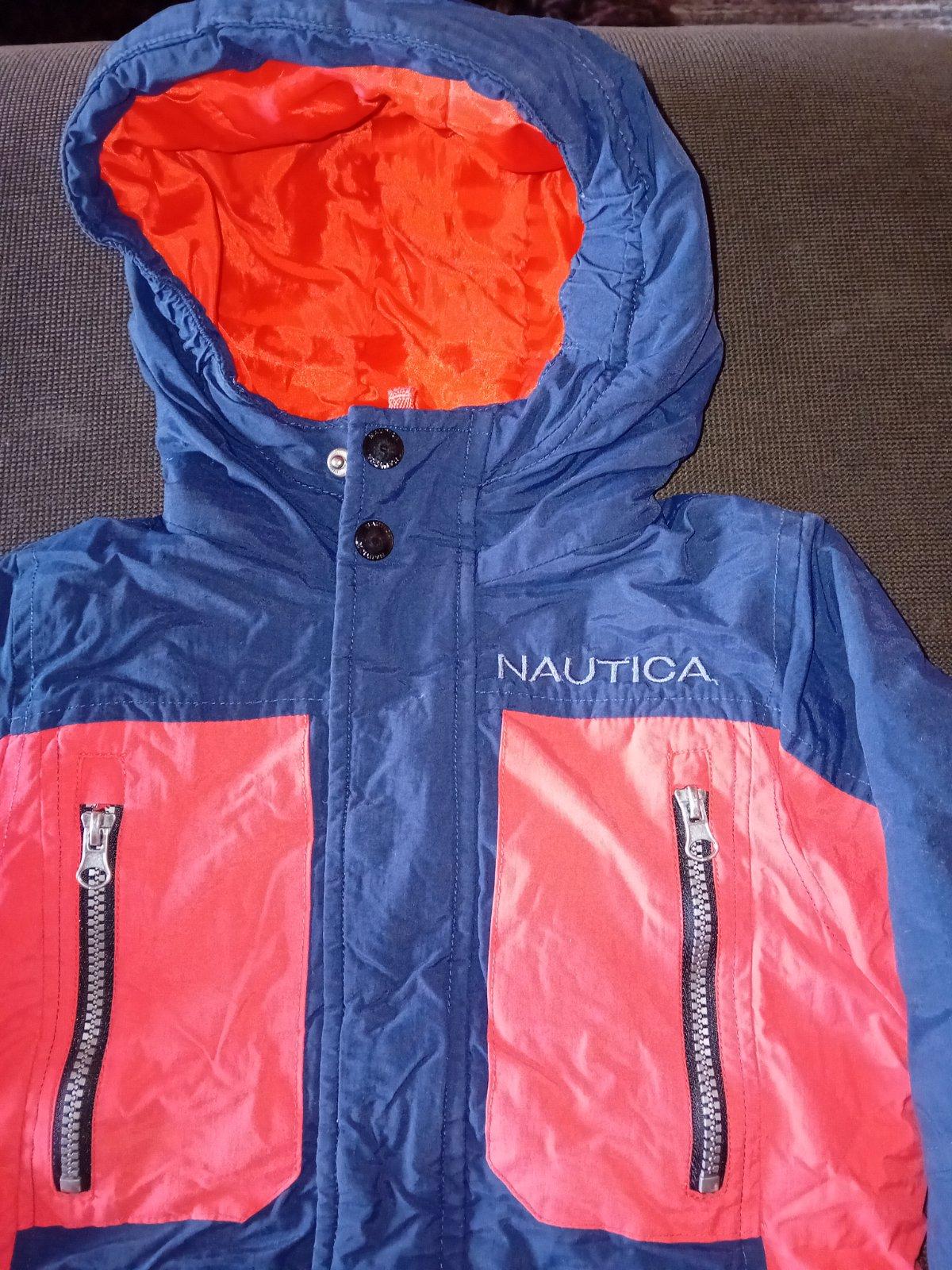 Krásna chlapčenská bunda značky Nautica kupovaná v USA. Je v nosenom stave, stále veľmi pekná. Na 4 roky. Má odnímateľnú flisovú vestu, ktorá sa dá jednoducho pripojiť k bunde zipsom. Zipsy sú všetky funkčné. Rozmery bundy nafotené, pozrite foto. Cena 18€ + poštovné.