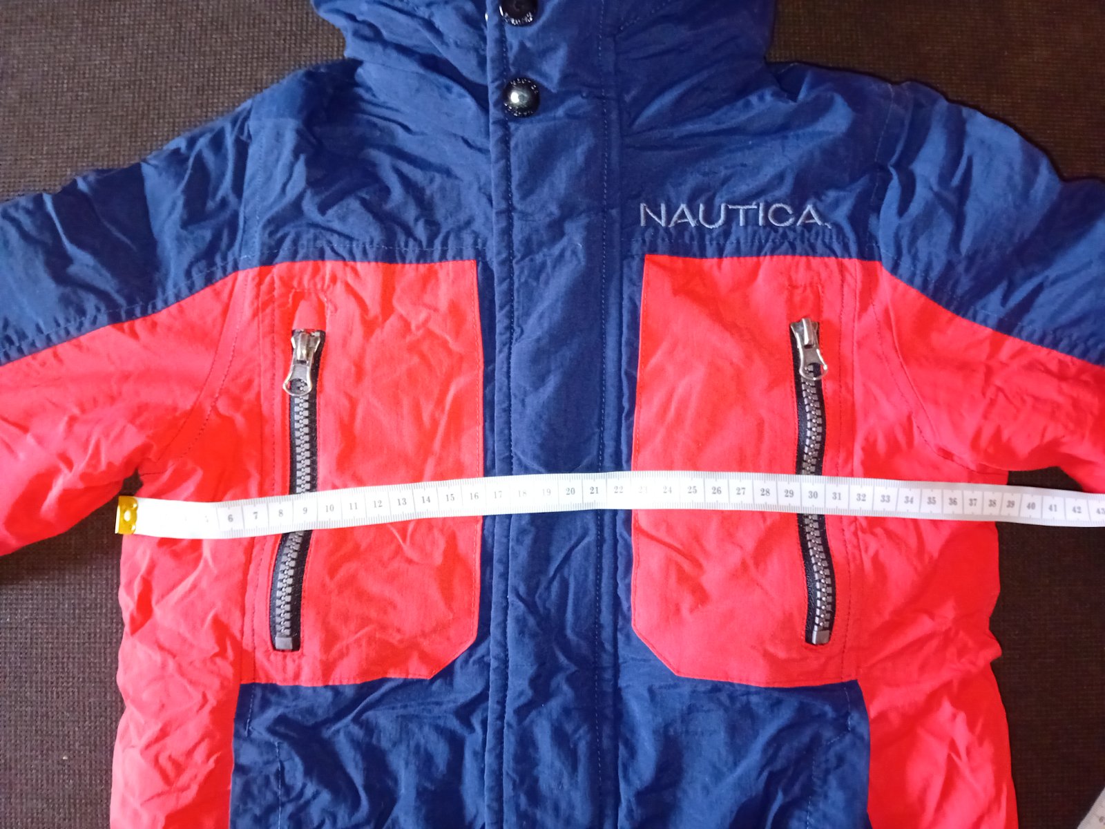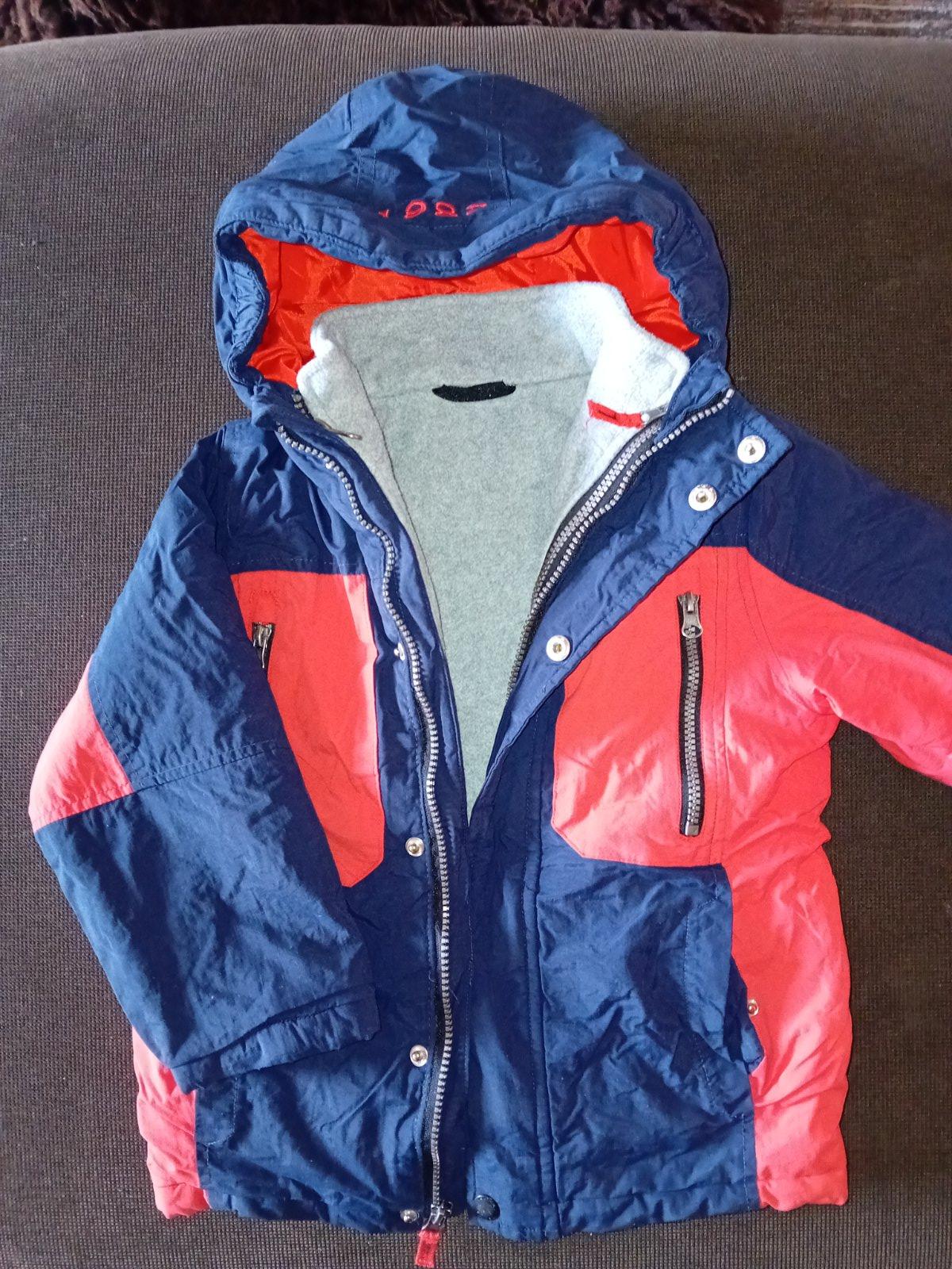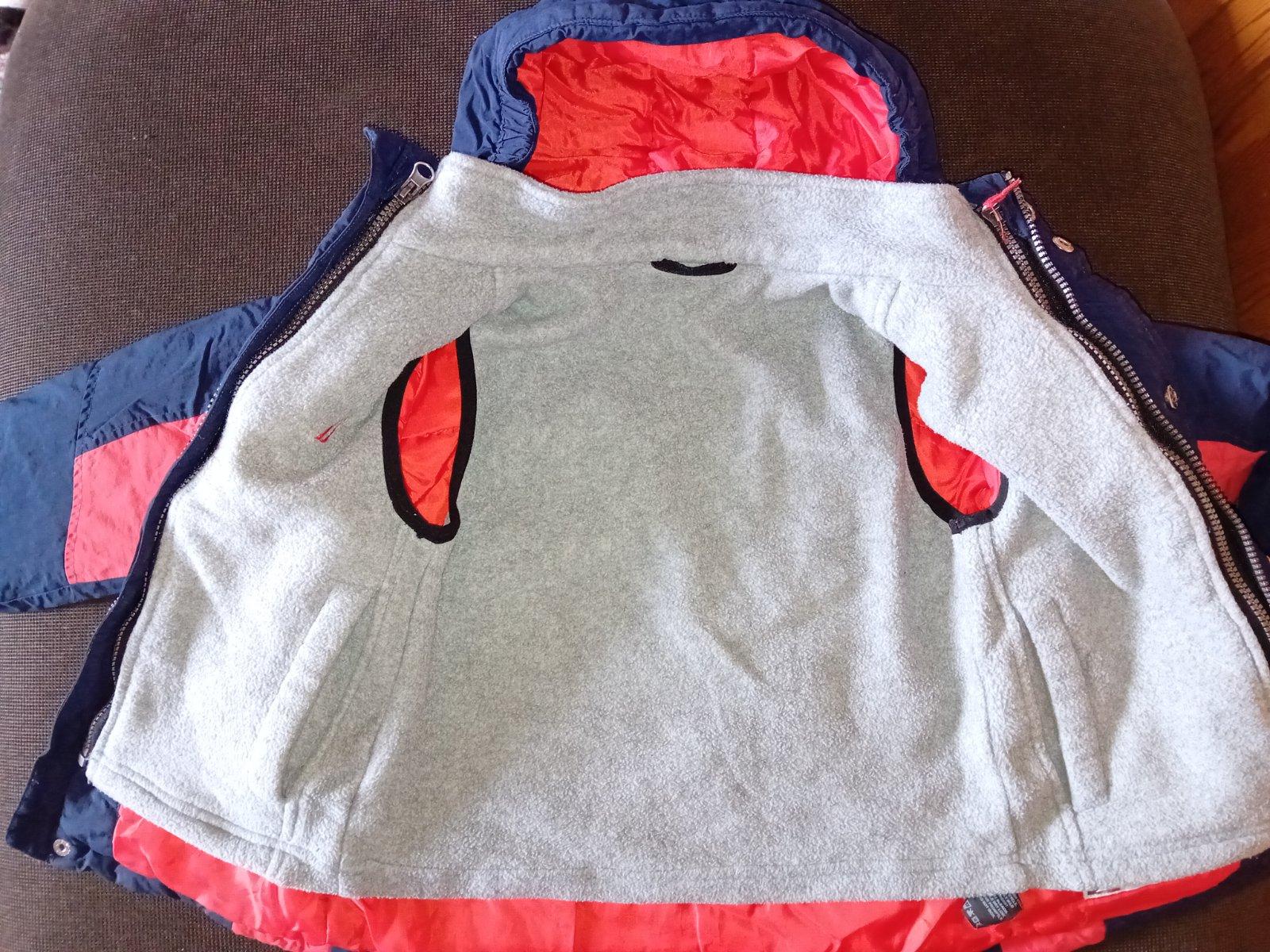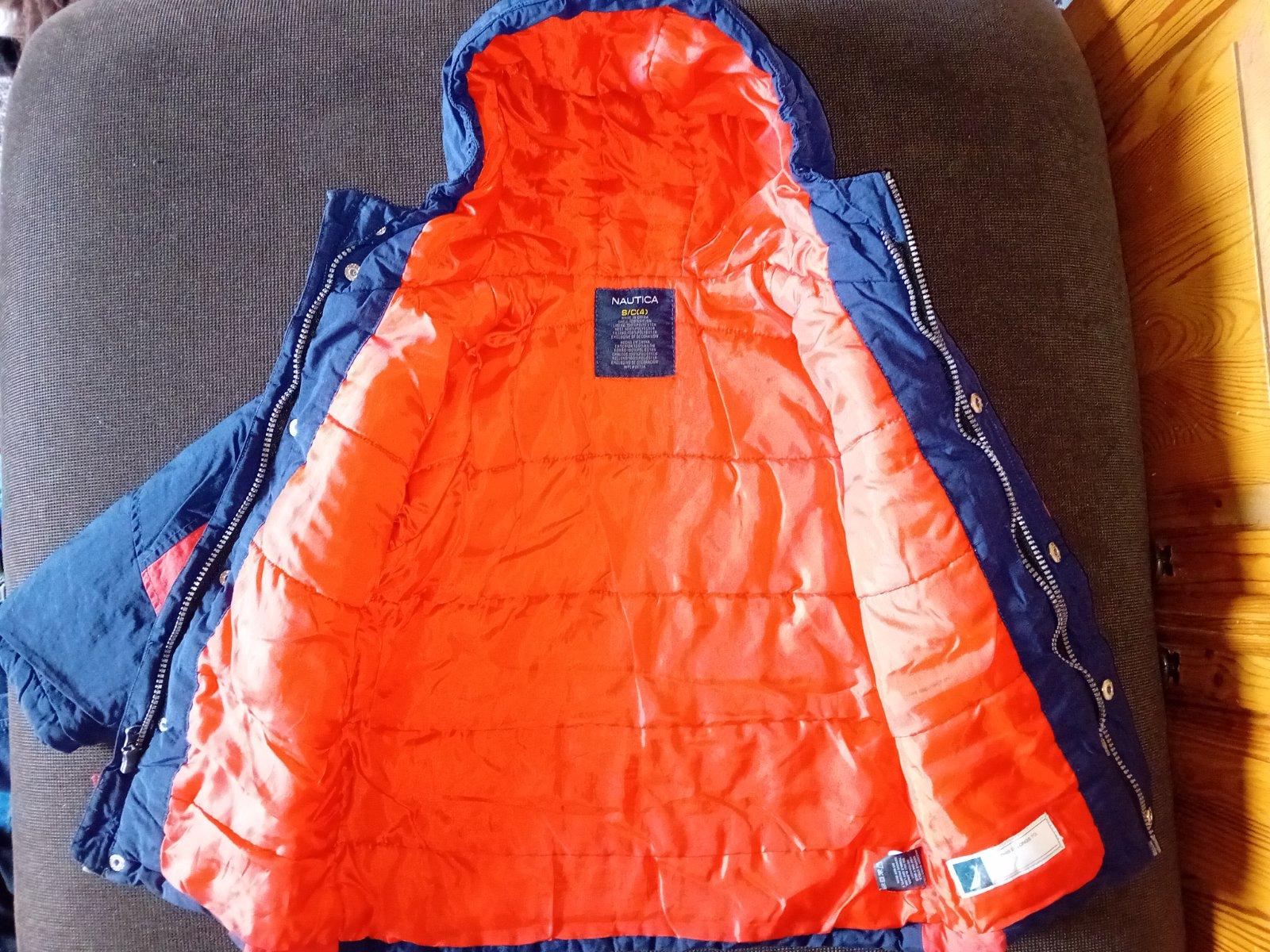 Krásna chlapčenská bunda značky Nautica kupovaná v USA. Je v nosenom stave, stále veľmi pekná. Na 4 roky. Má odnímateľnú flisovú vestu, ktorá sa dá jednoducho pripojiť k bunde zipsom. Zipsy sú všetky funkčné. Rozmery bundy nafotené, pozrite foto. Cena 18€ + poštovné.