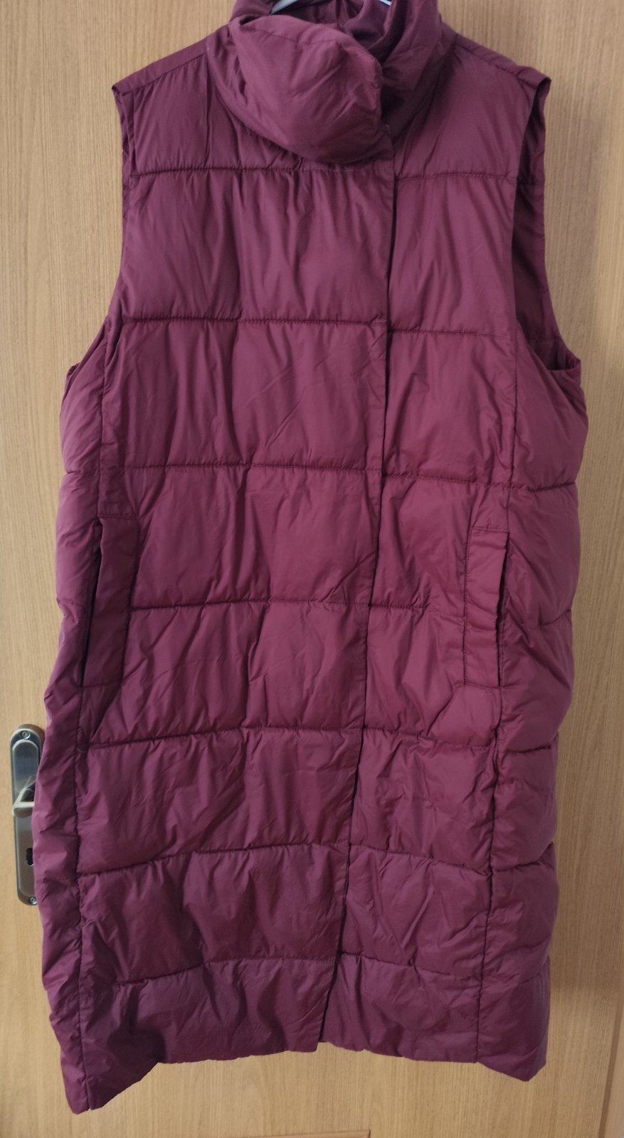 Dokonalá vesta, veľmi príjemná, veľ M, ale skôr odporúčam na L a vhodná aj na väcsie prsia, dĺžka meraná od krku je cca 105cm, šírka cez prsia až do 55cm, cez pás cca 56cm. Nosená, no žiadne poškod...