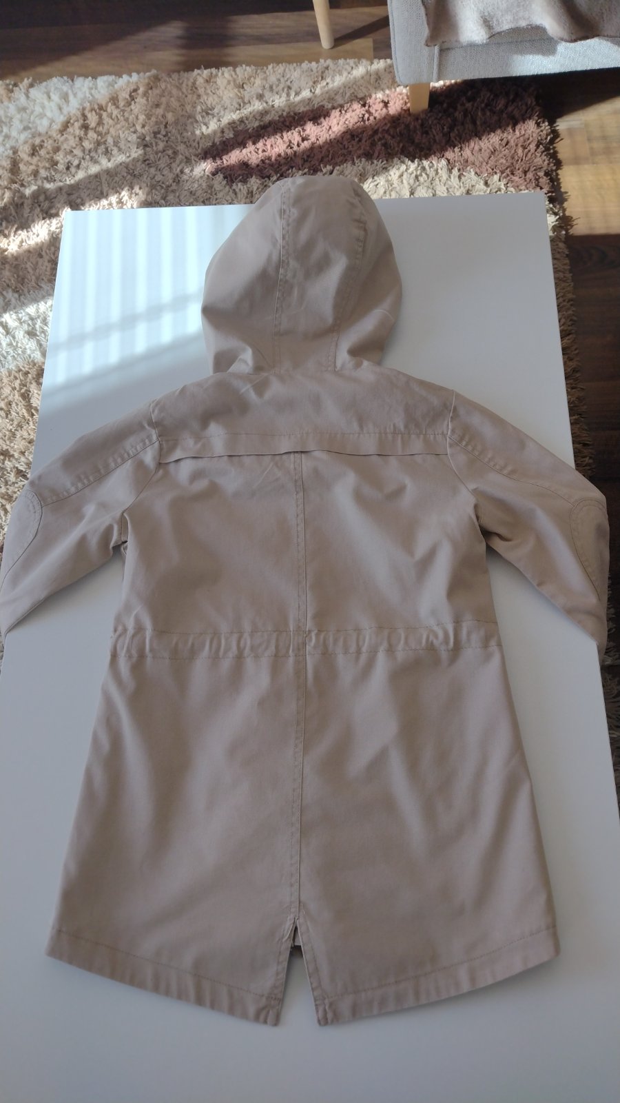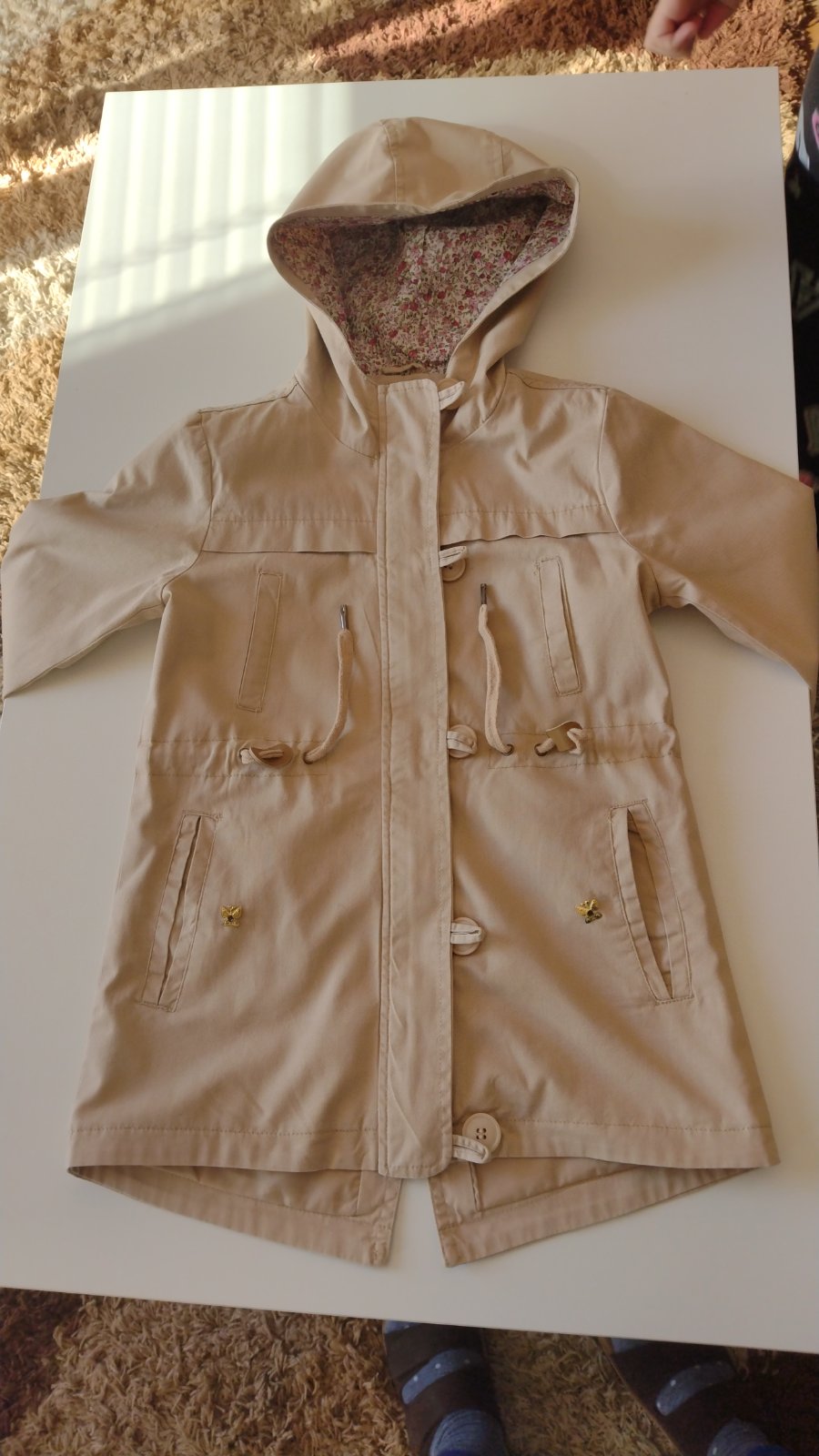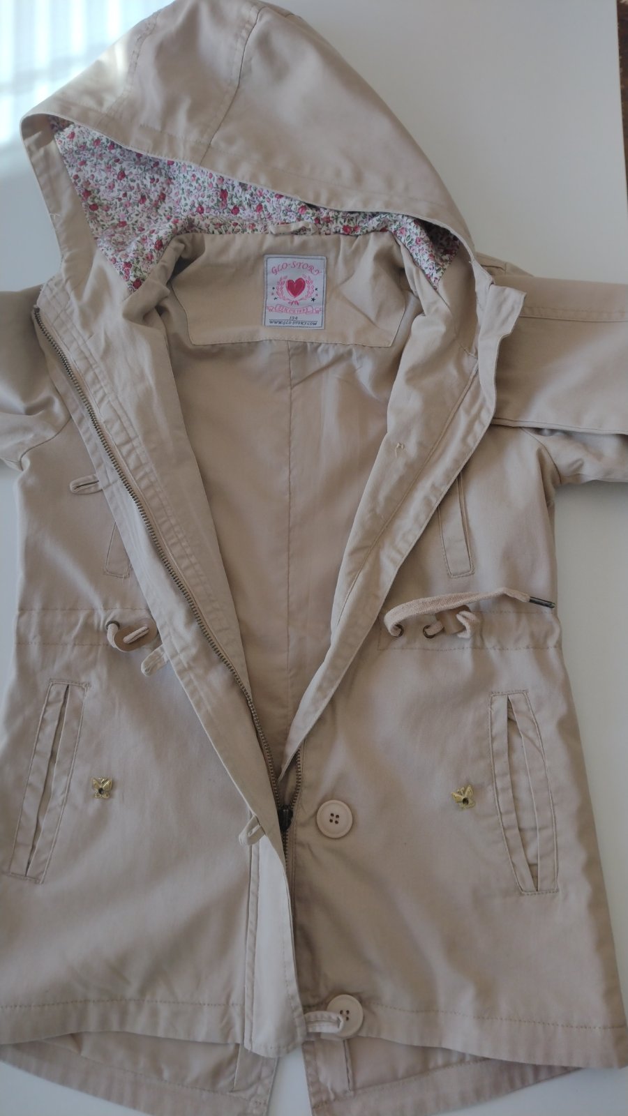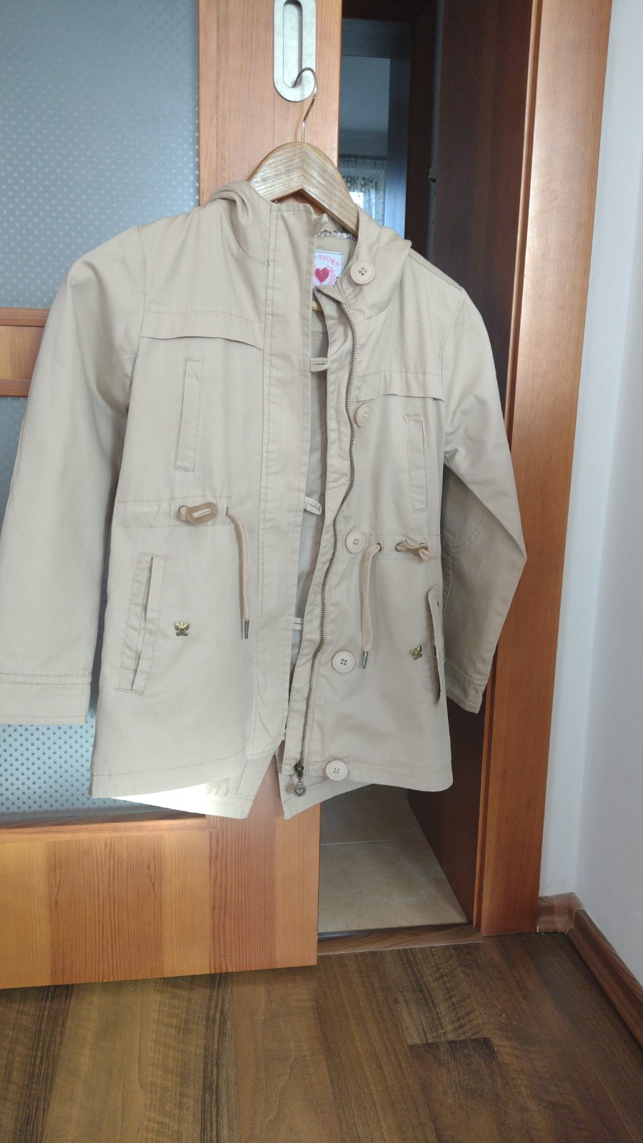 Krásny prechodný kabátik, zapínanie na zips, dá sa v páse stiahnuť šnúrkou.