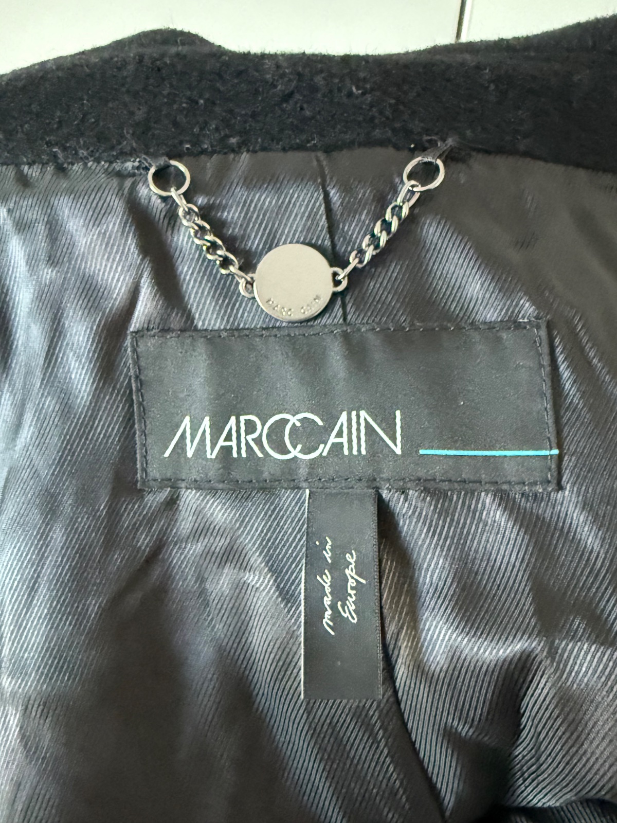 Krásny mäkučký čierny kabát Marc Cain. Velkost 6, sedí na XL. Super nosený stav, bez poškodenia. Zloženie alpaky a vlny. Miery: šírka 60 cm, dĺžka stredom chrbta 94 cm.