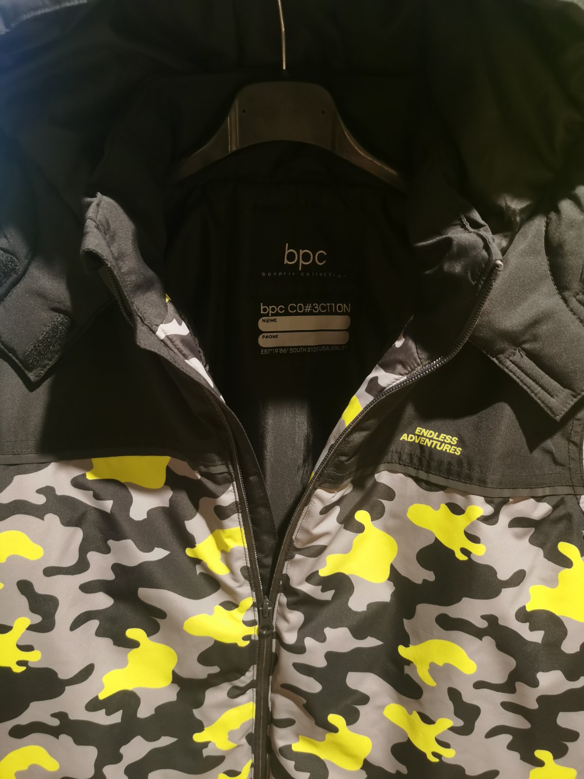 Chlapčenská bunda s kapucňou veľ. 176/182. Bez pošlodení, veľmi málo používaná. Cena je s pštovným.