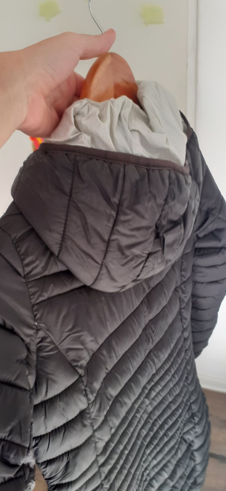Predám novú, max. 2x oblečenú bundu na zimu. Je veľmi teplá a je to taký širší strih, ale pás sa dá regulovať. Má obrovskú kapucňu s čiernou umelou kožušinkou. Nemá žiadne vady ani nie je poškodená.
