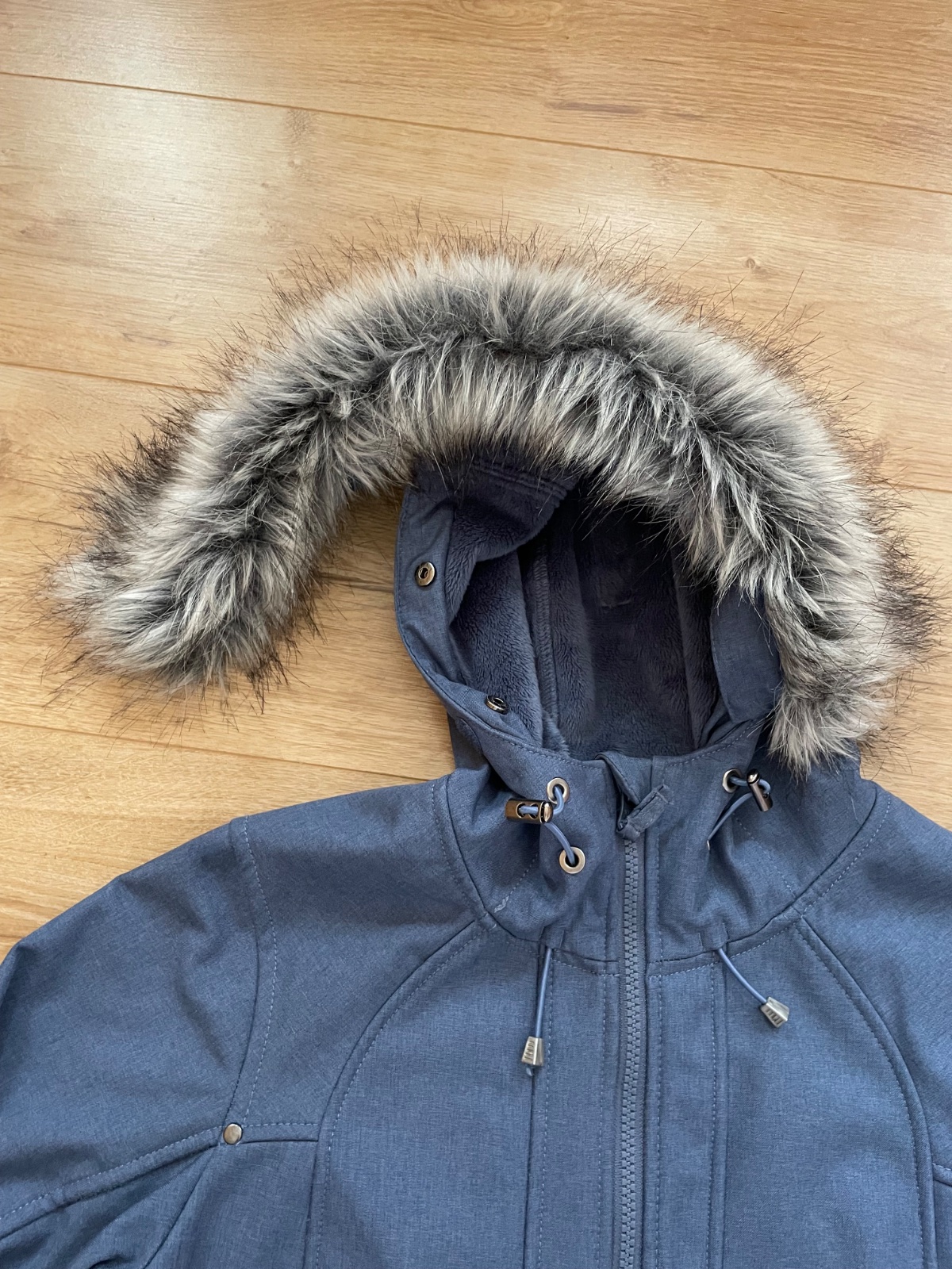 Pekná dámska prechodná bunda. Nosená, bez poškodení. Kožušina na kapucni je odnímateľná.
