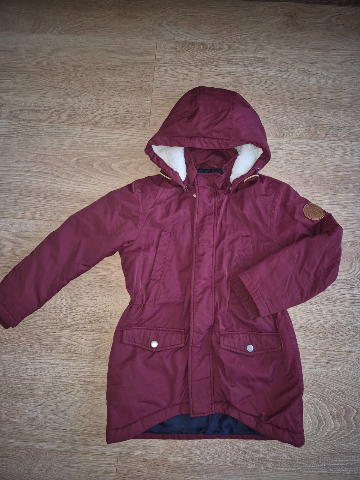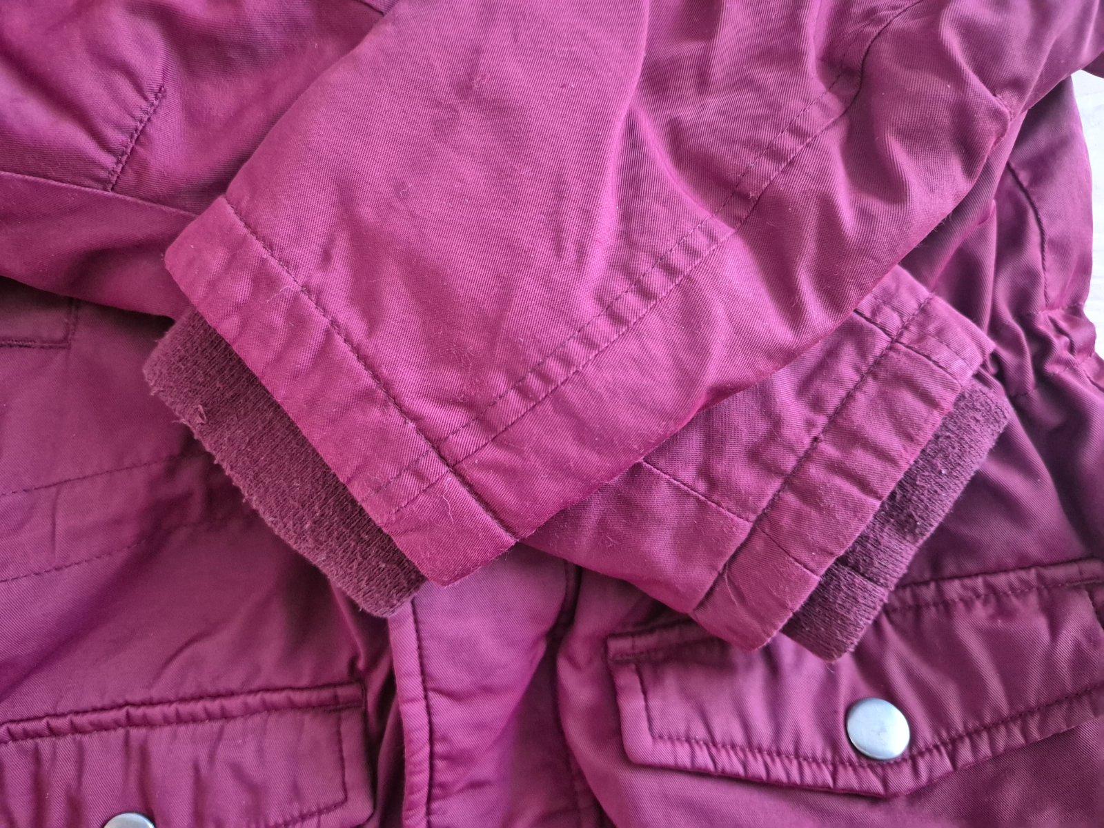 Teplá, zvnútra zateplená zimná bunda, veľkosť 122, na chrbte je nitka vytiahnutá, okrem toho iné poškodenie nie je