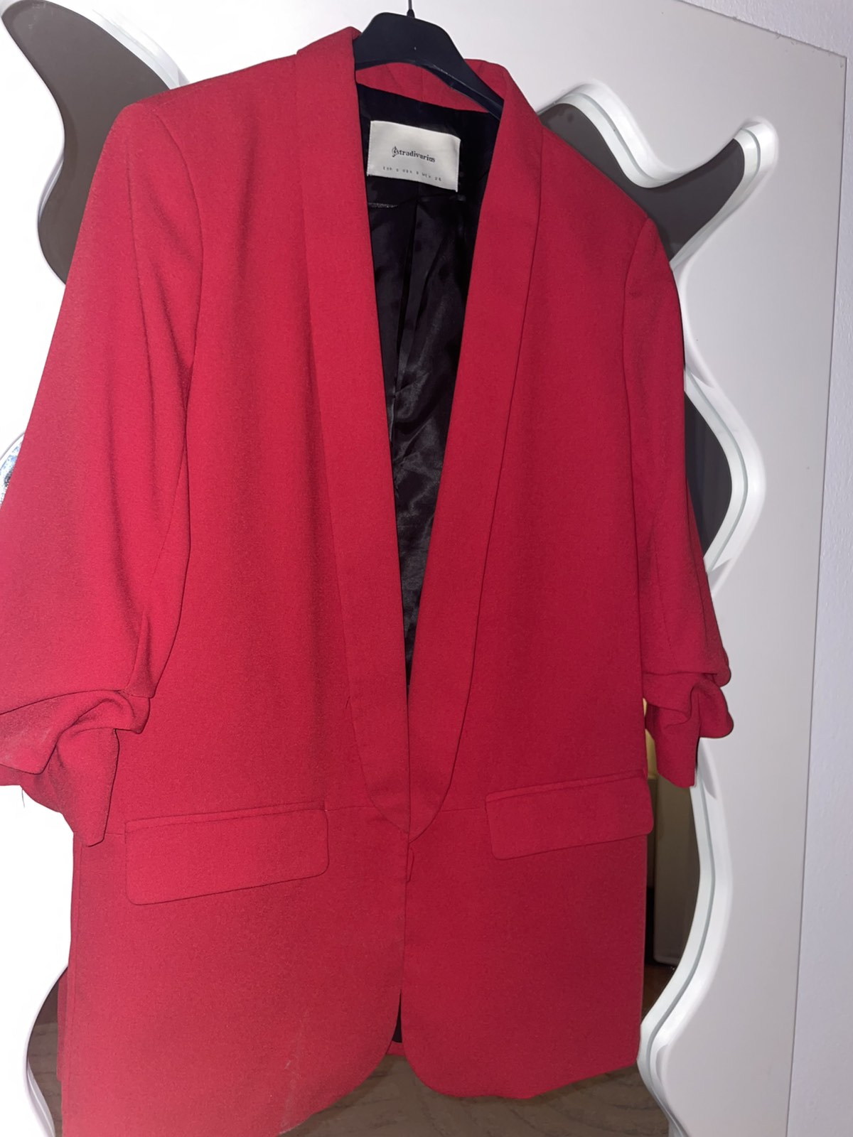 Výborný stav, malinová červená, bez zapinania, veľkosť S, aj na M, šírka pod pazuchami cca 49 cm, dĺžka 76 cm