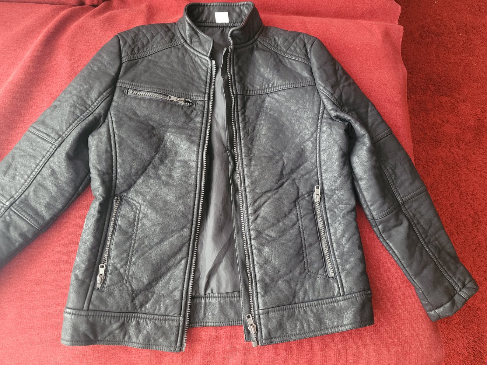 Stylova, frajerska bunda, velkost uvadzana 152 , no je mensia, treba sa riadit rozmermi Chybicka krasy na boku rukava su dva sevy vyparane /vid foto/ Tym ze je to na boku nebije to do oci Dlzka 52c...