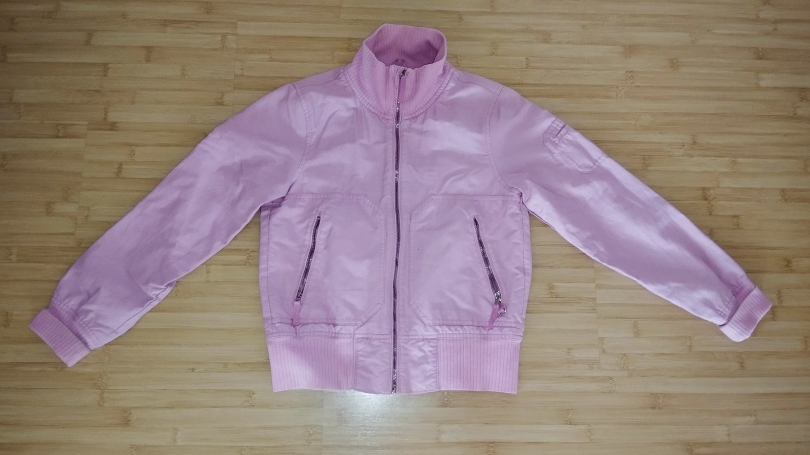 Predám dievčenskú bundu prechodnú bledoružovomaslovej farby. Veľkosť: 158/164 Cena: 5 eur.