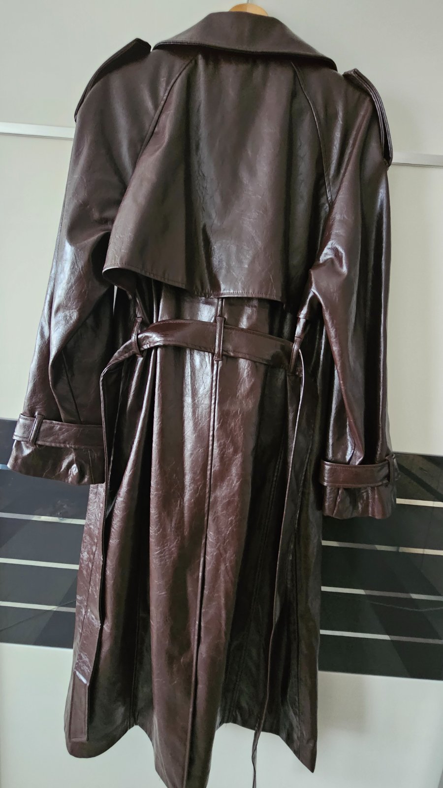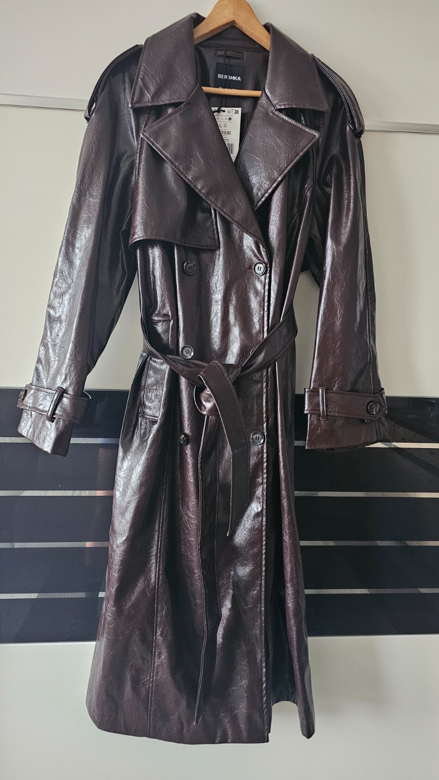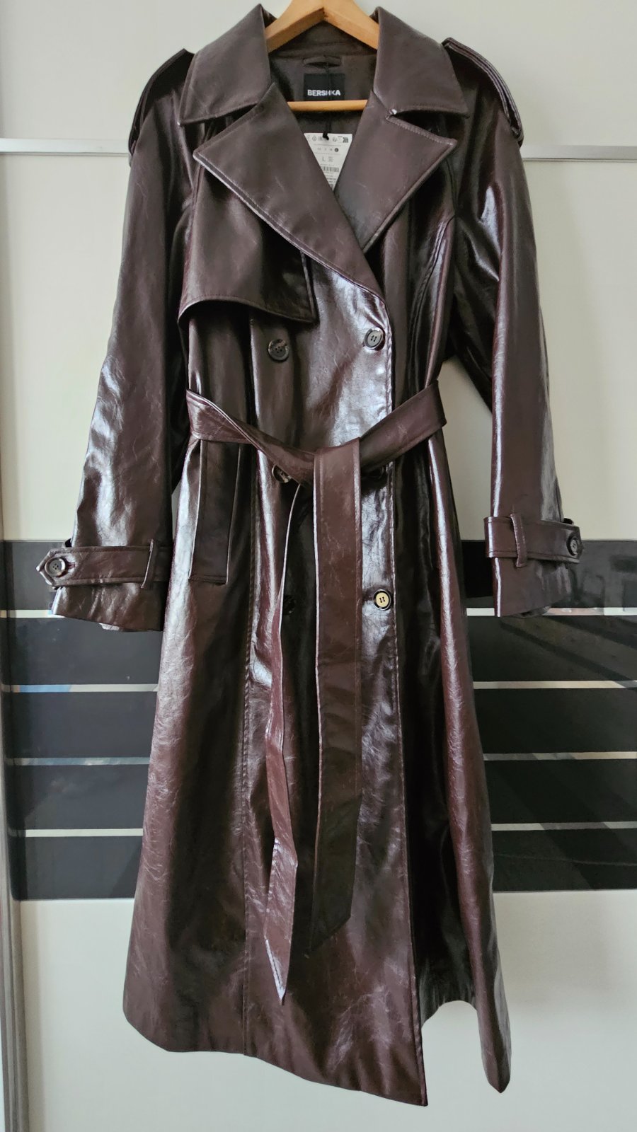 Predám úplne nový,nenosený koženkový trenčkot veĺkosť L.zn.Bershka..je vhodný aj na veľkosť XL ako aj M.
