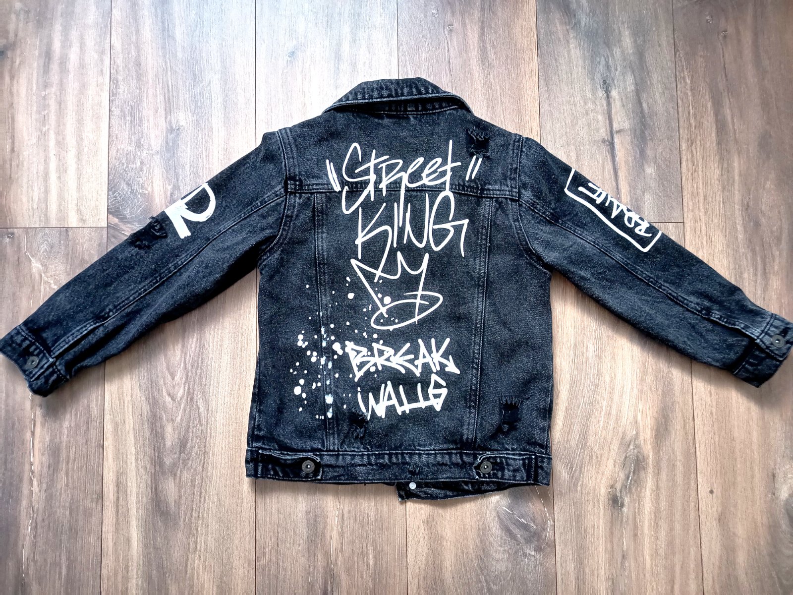 Perfektná štýlová riflová bunda,potrhaný vzhľad,popísaná vpredu aj vzadu,ideálna pre každého malého fešáka . Veľkosť 128 ale sadne celkom aj na 134, nosená príležitostne,bez poškodení. Dĺžka 48 cm. Mám ju v rovnakej veľkosti aj v bledomodrej,tiež na predaj.