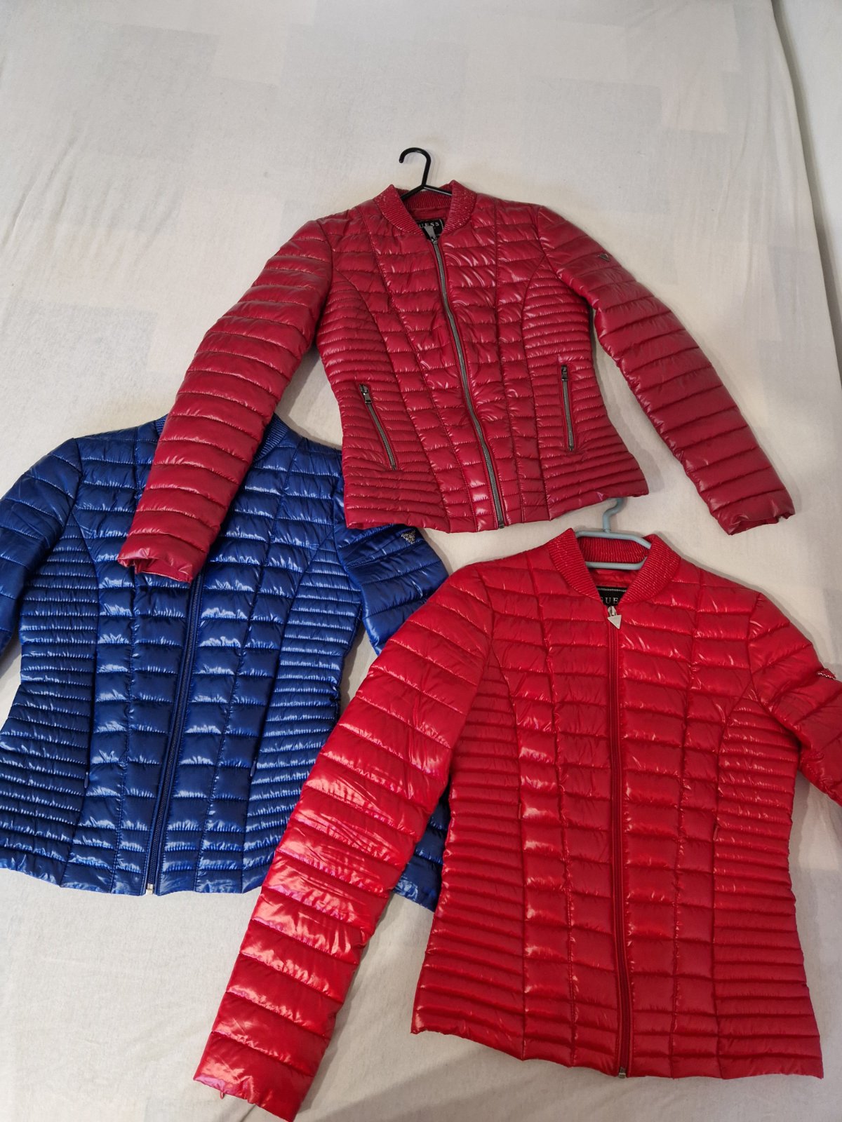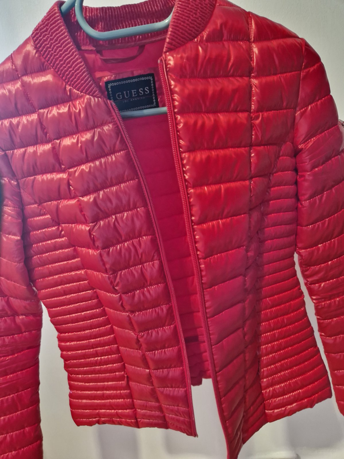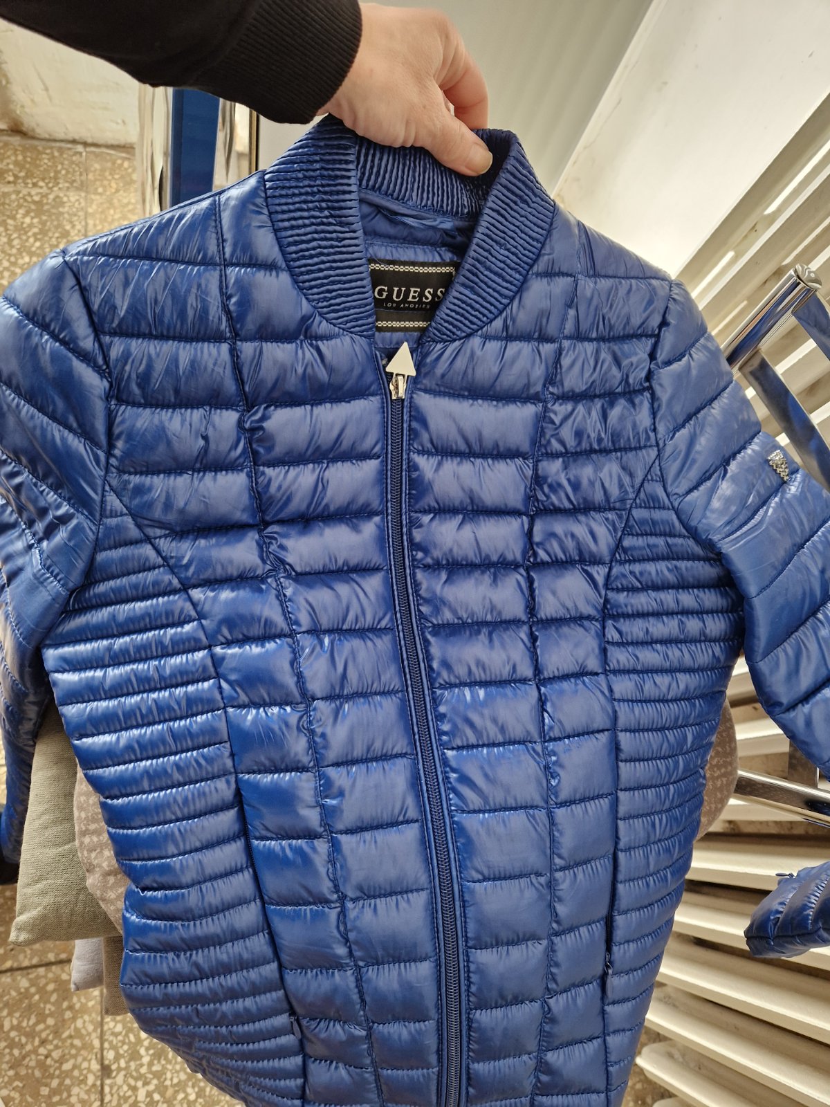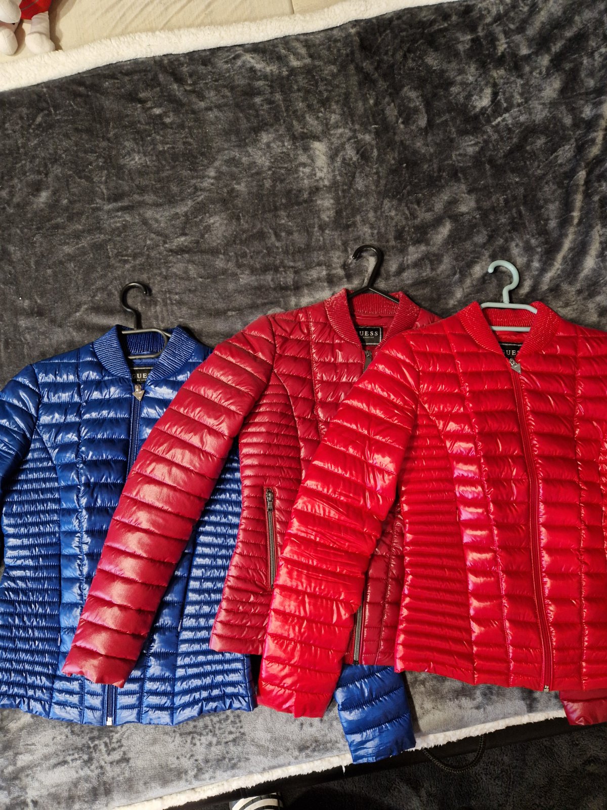 Krasna žiarivo modra bunda guess na prechod,jar velkost xs,stav dobry,striedana s inými ,mam tento model aj v žiarivej červenej a tmavej červenej, zipsy na rukáve, original,cena za kus
