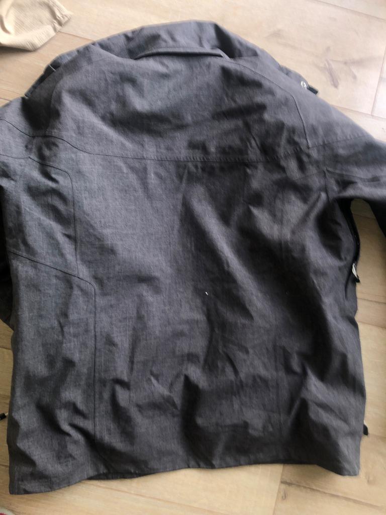 Kvalitná nepremokavá ,dobrý stav ,dobre prepracovaná,dĺžka 68 CM šírka 58 CM ,rukáv od pleca 64 CM ,písaná velM ale je asi väčšia ,,pozri miery