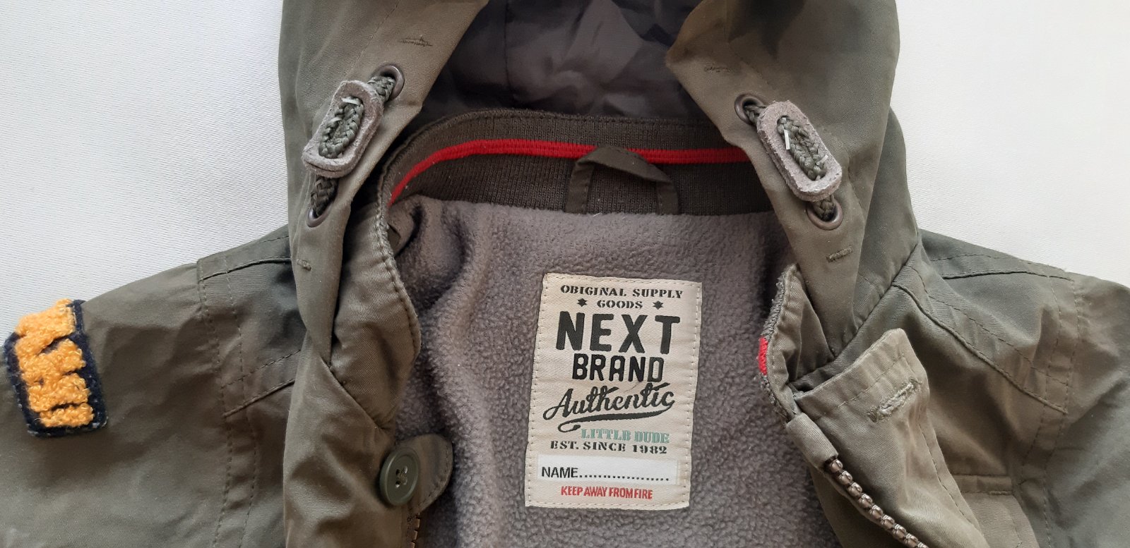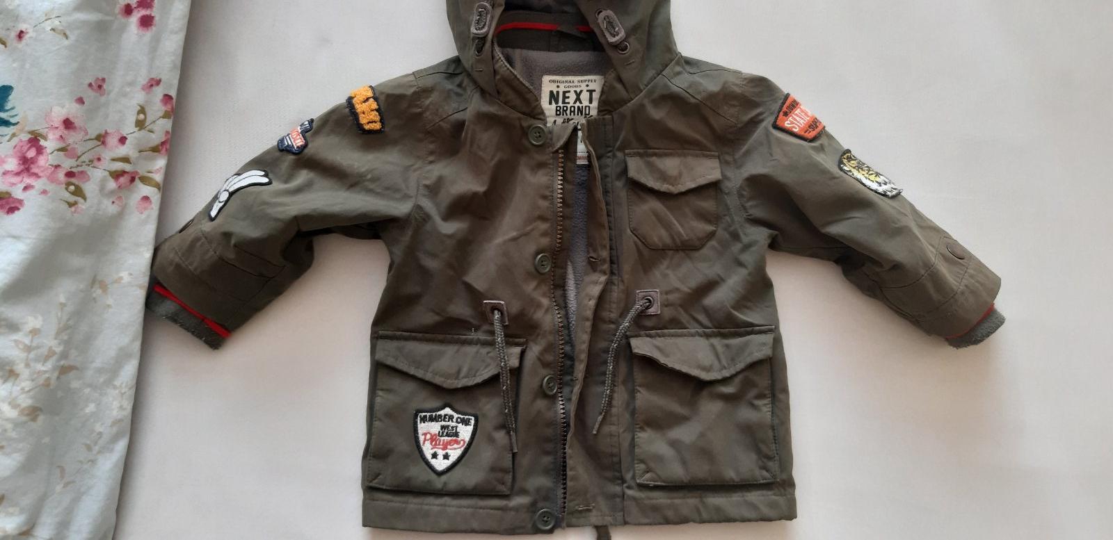 Predám minimálne nosenu bundu Next ,čelo zateplenu flisom a kapucňou - nedá sa dať dole. CD 40cm, rukáv od limca je 34cm a pod pazuchami je36cm*2. PC 35€