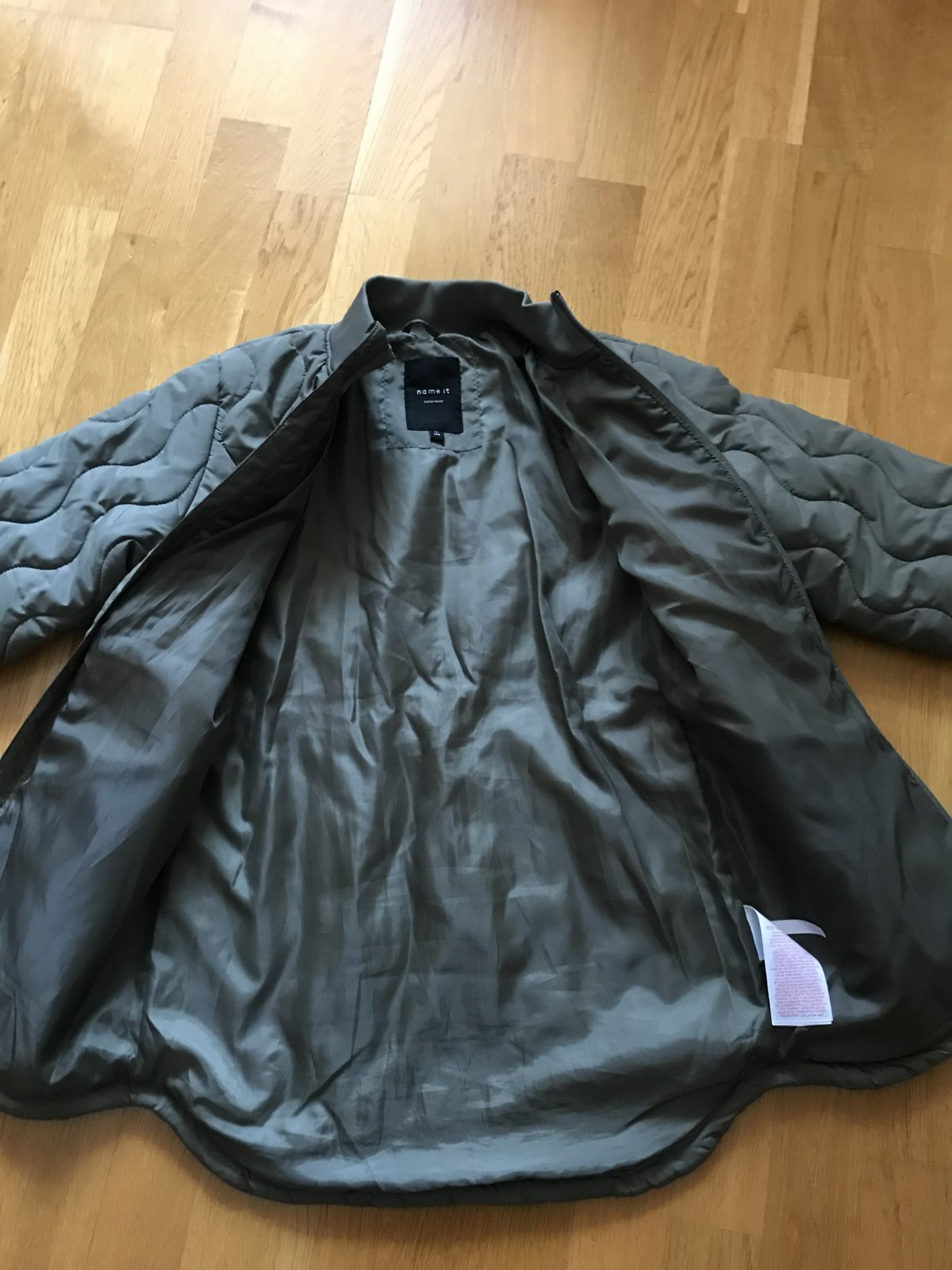 Tmavomodrá bundička vhodná na menšiu zimu alebo prechodné obdobie. Veľkosť 146, krásny stav. Rozmery medzi fotkami.