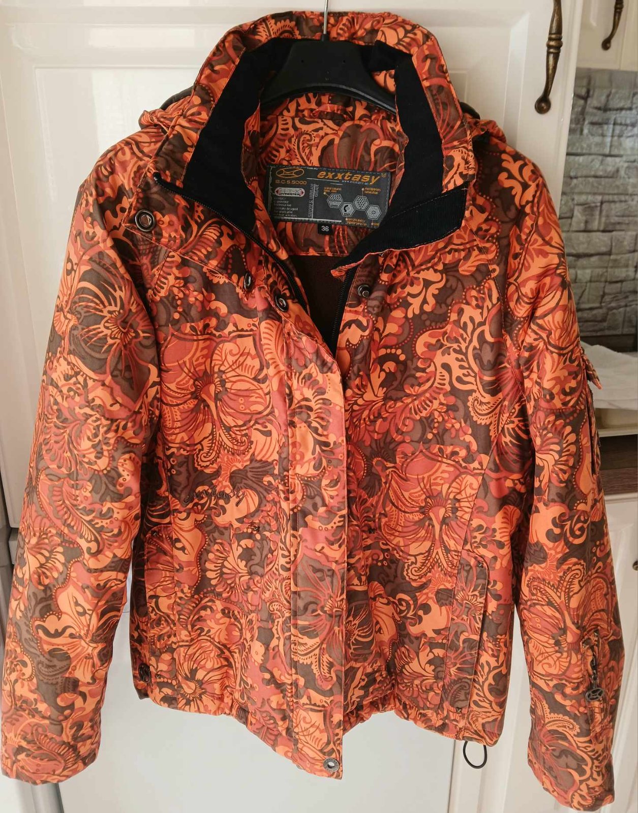 Kvalitná lyžiarska bunda s kapucňou zn.Exxtasy do chladného počasia s vodným stĺpcom a vodeodolnou membránou, veľ.36. Bunda má celkovú dĺžku 63cm, šírka cez prsia je 54*2cm a dĺžka rukáva je 63cm. Výborný, čistý stav. Cena 15Eur.