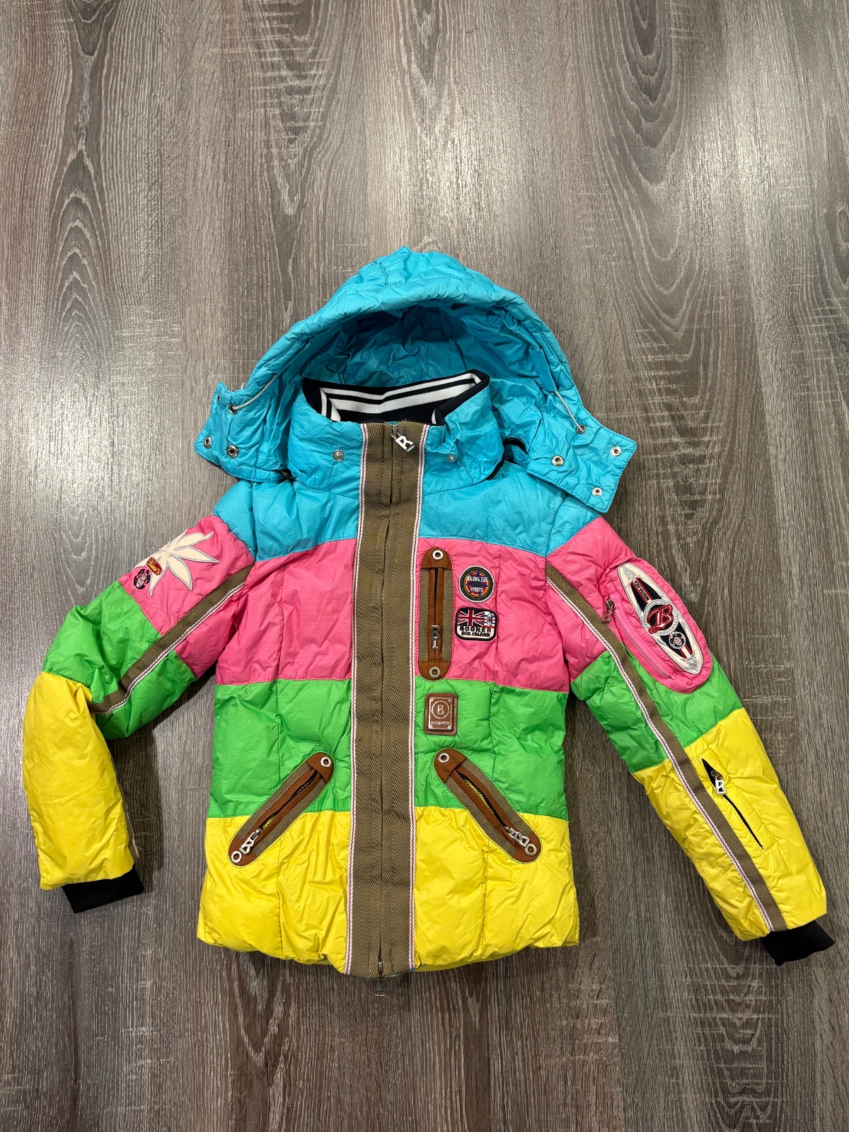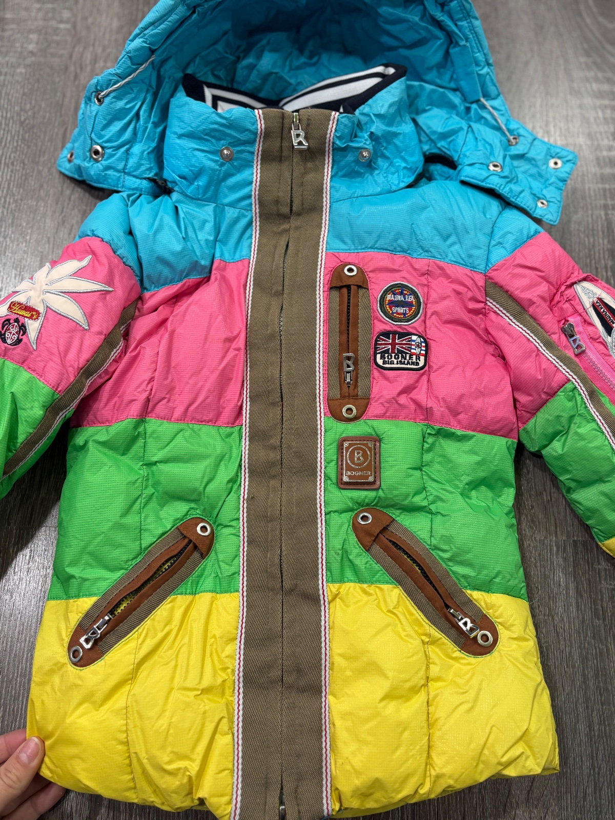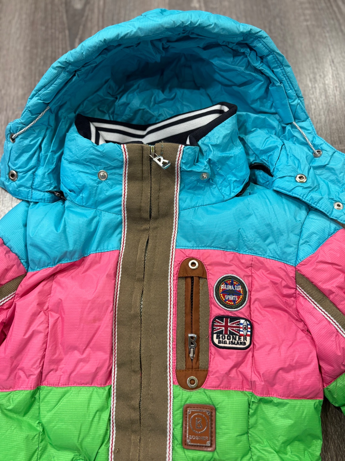 016.Bogner dievčenska štylová premakana zimna vetrovka vo velkosti 4-6 rokov,kopec detailov,kapucna sa da odopnut,lyziarsky pas vo vnutri.Velkost 4-6 rokov,dlzka je 47cm,dlzka rukava od krku s vnurornym rukavom je 55cm,bez vnutorneho rukava je 52cm a sirka v podpazusi je 35x2cm