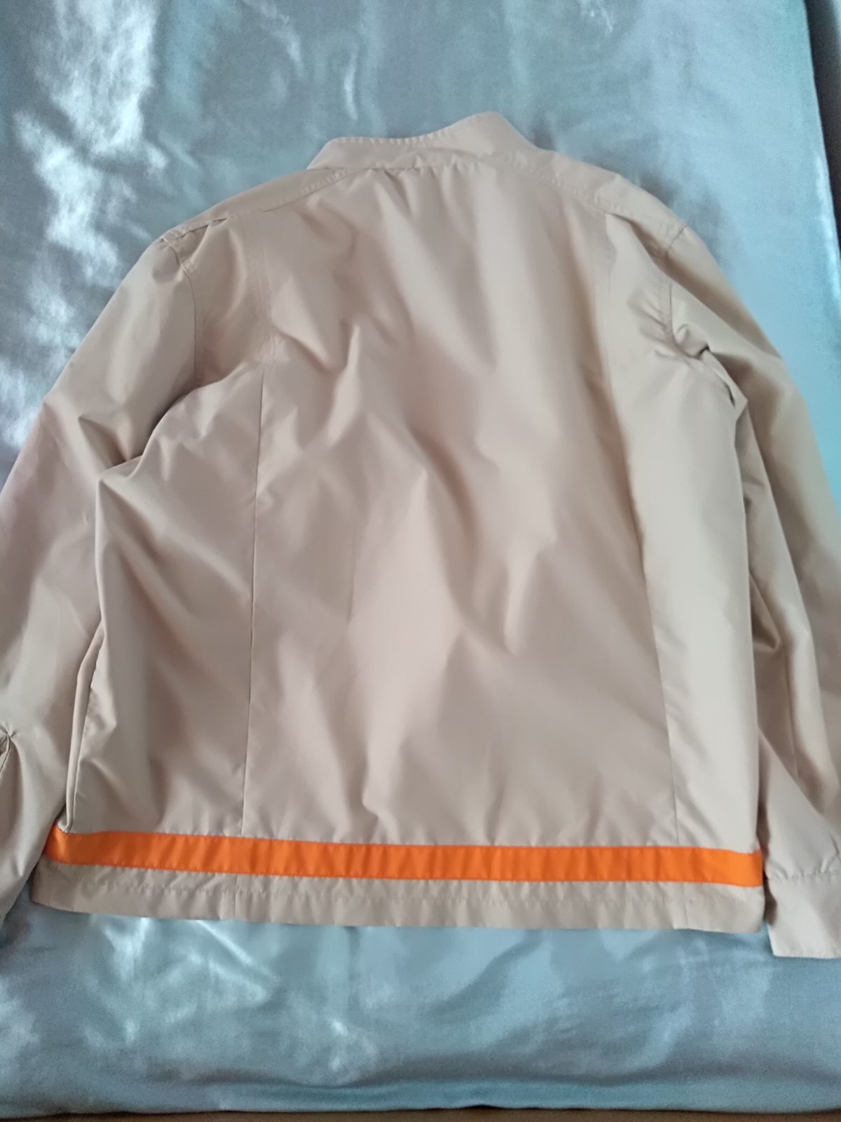 Predám chlapčenskú letnú vetrovku veľkosť xl značky madoc dnm, je na zips a zapínanie na gombík pri krku, 2x bočné vrecko, celková dĺžka je 75cm,obvod hrudníka je 2x 63cm, dĺžka rukáva od krku nadol je 83cm,od podpazušia nadol je 53cm,farba krémová kombinácia s oranžovou, zapínanie rukáva na gombík.