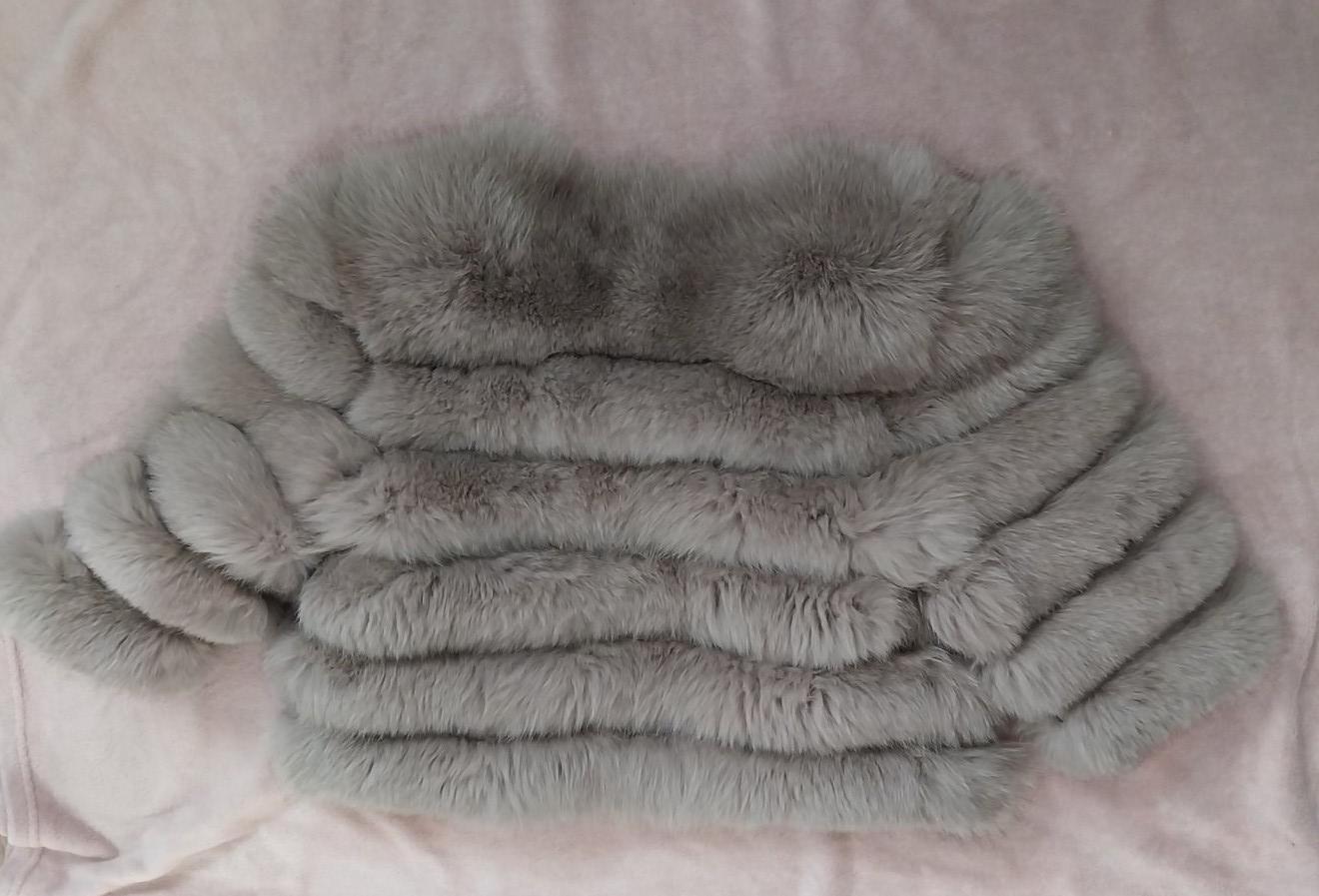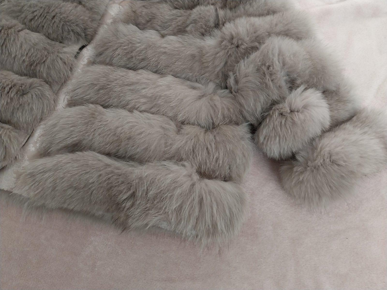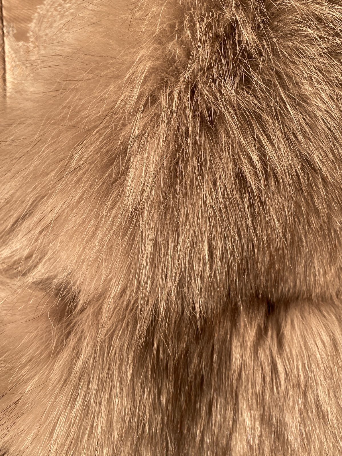 Predám krásny, elegantný kožuch v jemnej béžovo-hnedej (taupe) farbe. Ide o praktický model 2v1, ktorý môžeš nosiť ako klasický kožuch s rukávmi alebo po ich odopnutí ako štýlovú vestu.