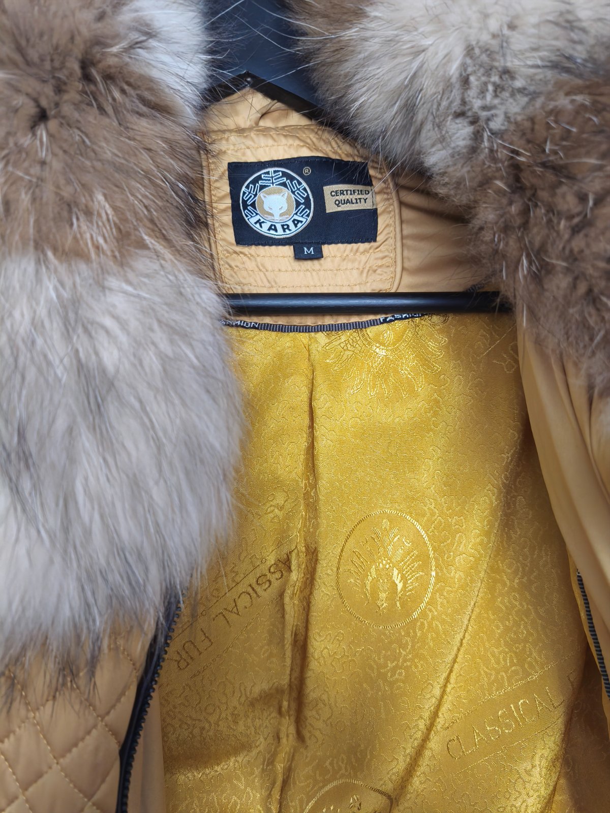 Nadherna velmi tepla zimna bunda Kara s krasnou bohatou kozusinou z lisky lemovana kozenymi prvkami. Oblecena asi 2x v top stave uplne ako nova, mam vela inych a pltrebujem uvolnit noesto tak predavam. Farba je krasna horcicovo-zlata vyraznejsia ako na fotke, v skutocnosti krajsia. Povodna cena vysoka.
