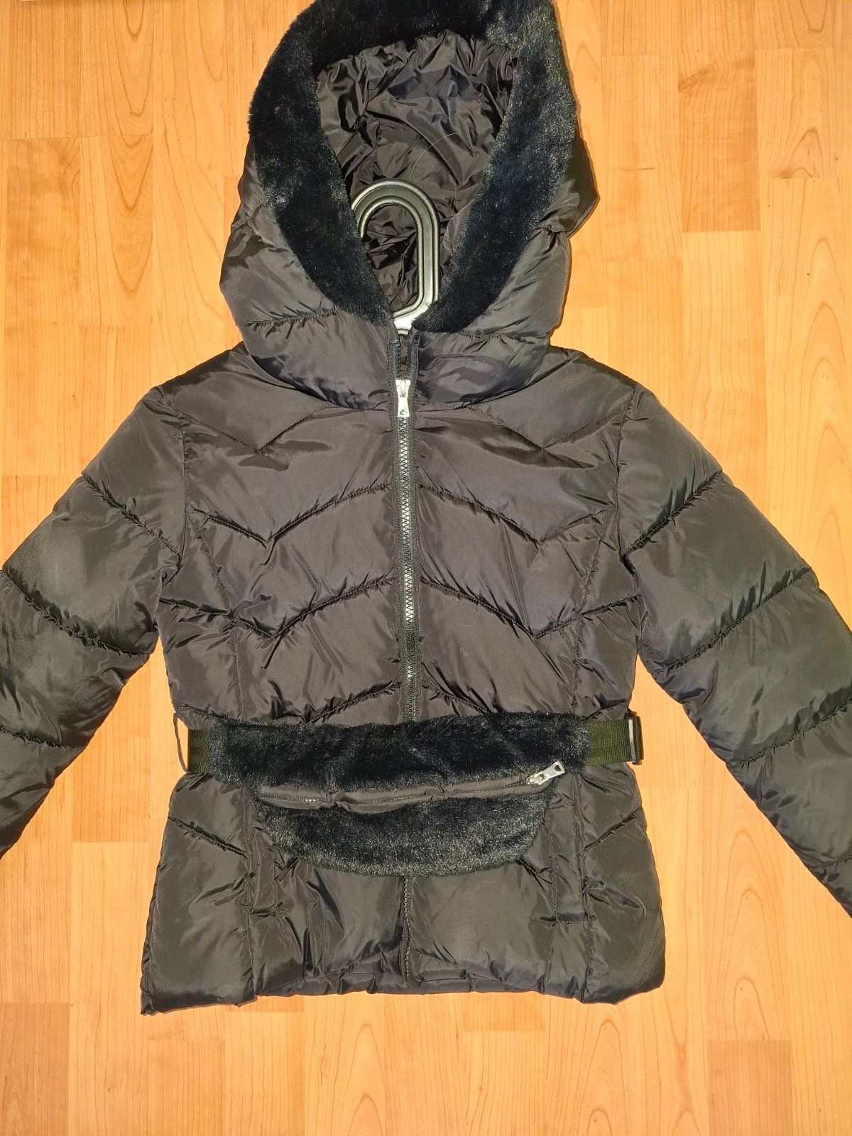 Tepla bunda Mango na zimu, po celej dlzke vo vnutri zateplena flausovou podsivkou. Kapucna je na pevno. Predlzeny strih pod zadok, taka ako kabatik, na zimu idealne. Velkost 128, aj sedi Vyborny st...