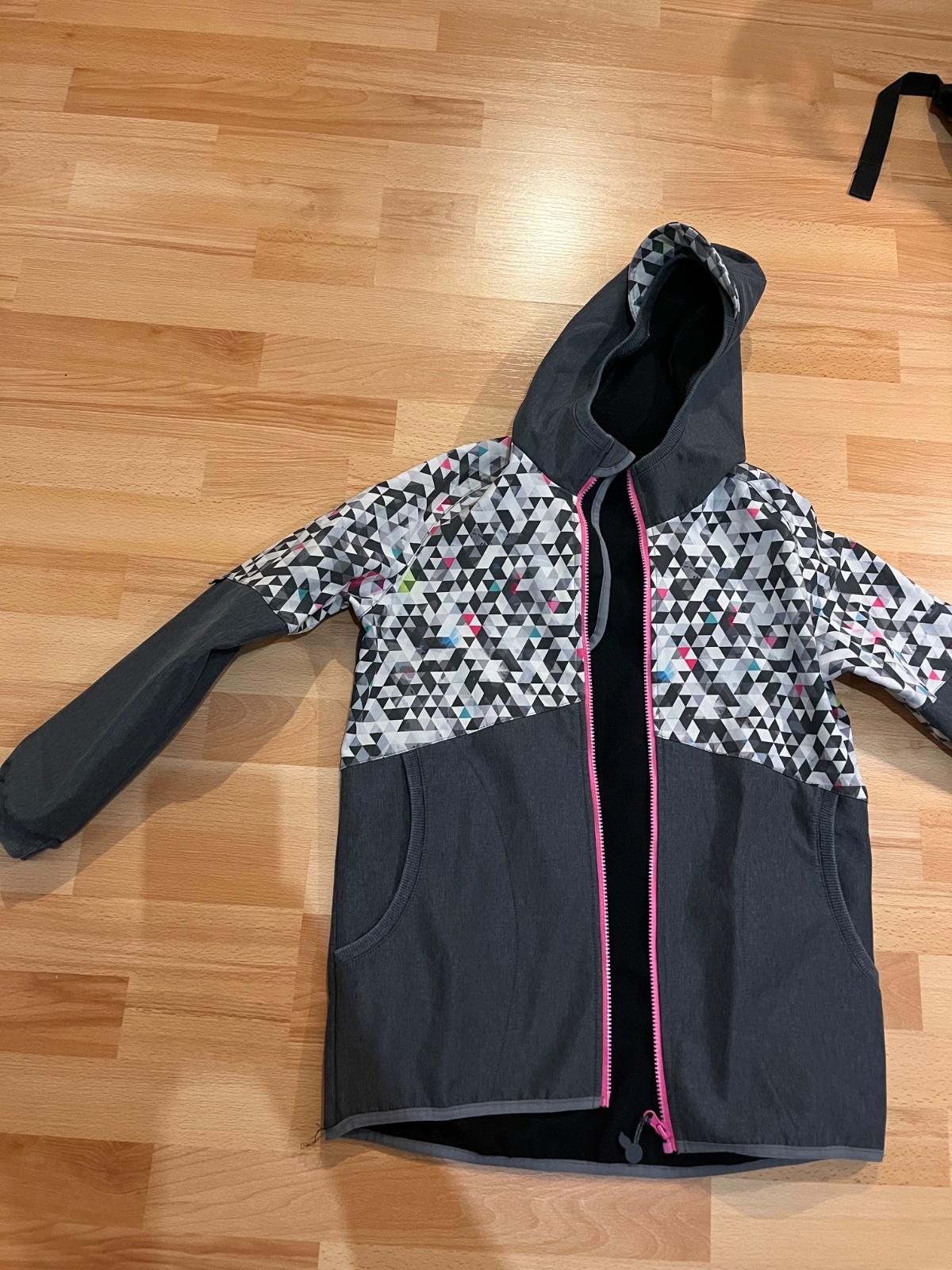 Nepoškodena softshel bunda s kapucňou a reflexnym prvkom dlhšia, 152/158