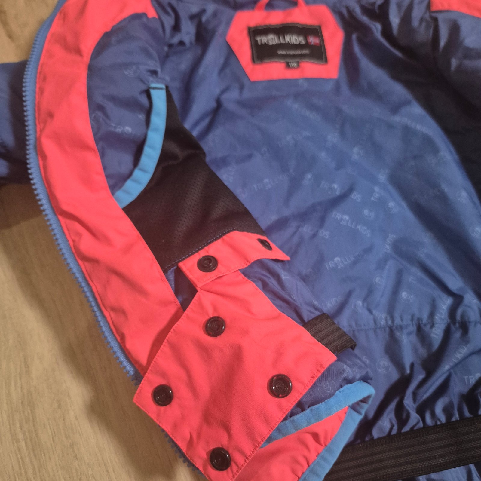 Nepremokavá vetrovka vhodná aj na lyžovanie. Má reflexné prvky a snežný pás, kapucňa sa dá odzipsovať. Nedostatky na foto, okolo rukávov opotrebované, čo ale nebráni funkčnosti.