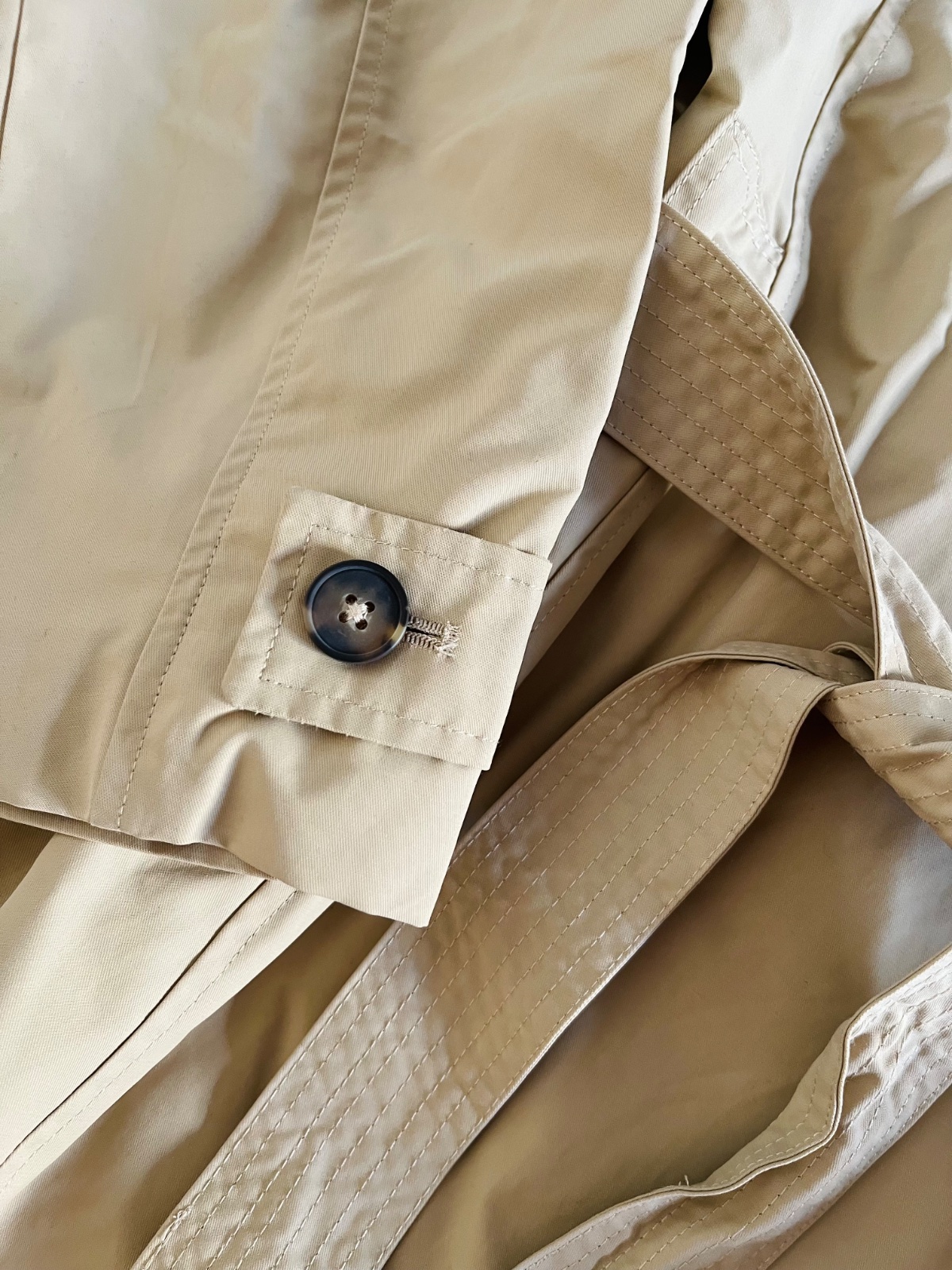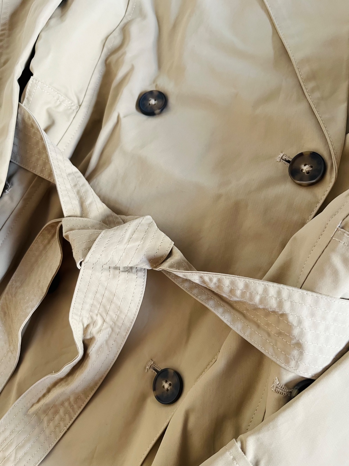Detaily: gombíky, kabát je na zaviazovanie v páse