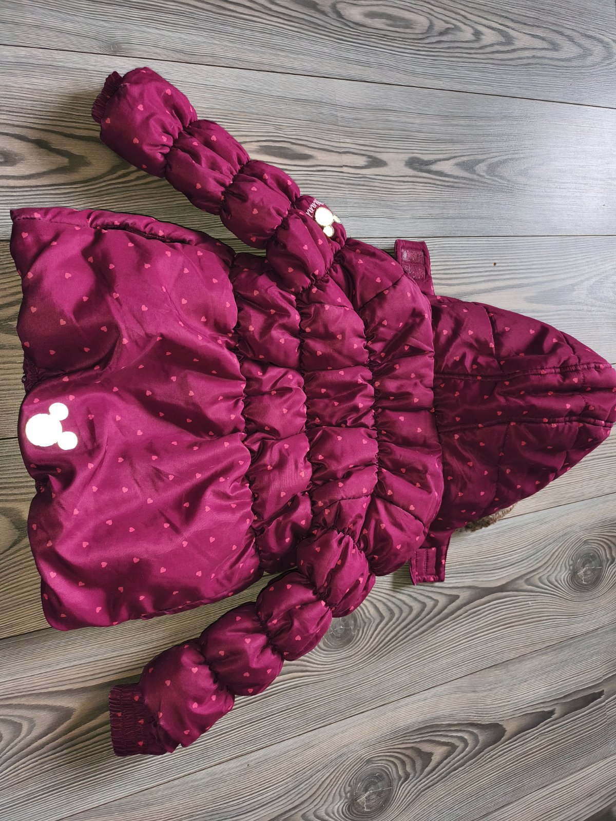 Krásna zimná budička Topolino veľ.98 so zvieratkami. Šírka 31 cm, dĺžka 39-41 cm. Rukáv od kapucne 37,5 cm. Bundička je krásna,zachovalá. Akurát na zadnej časti je pozaťahovaná. Pri nosení nie je a...