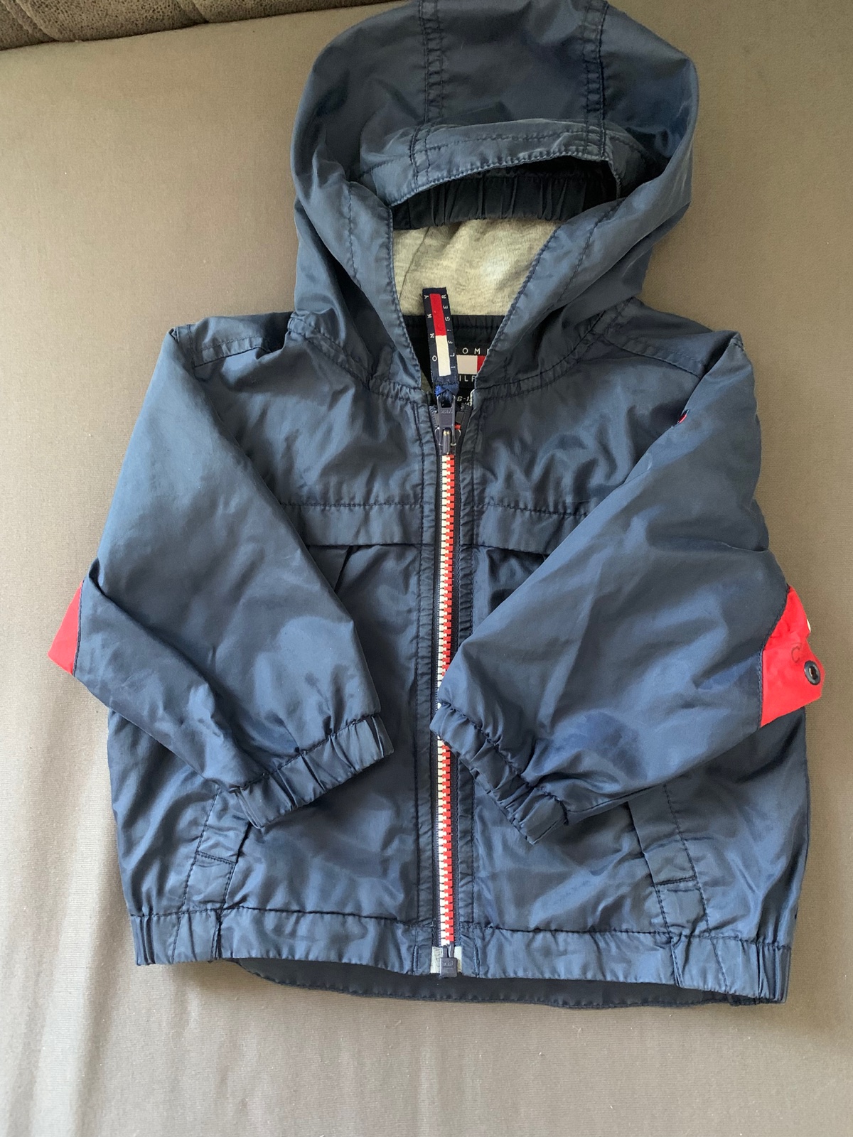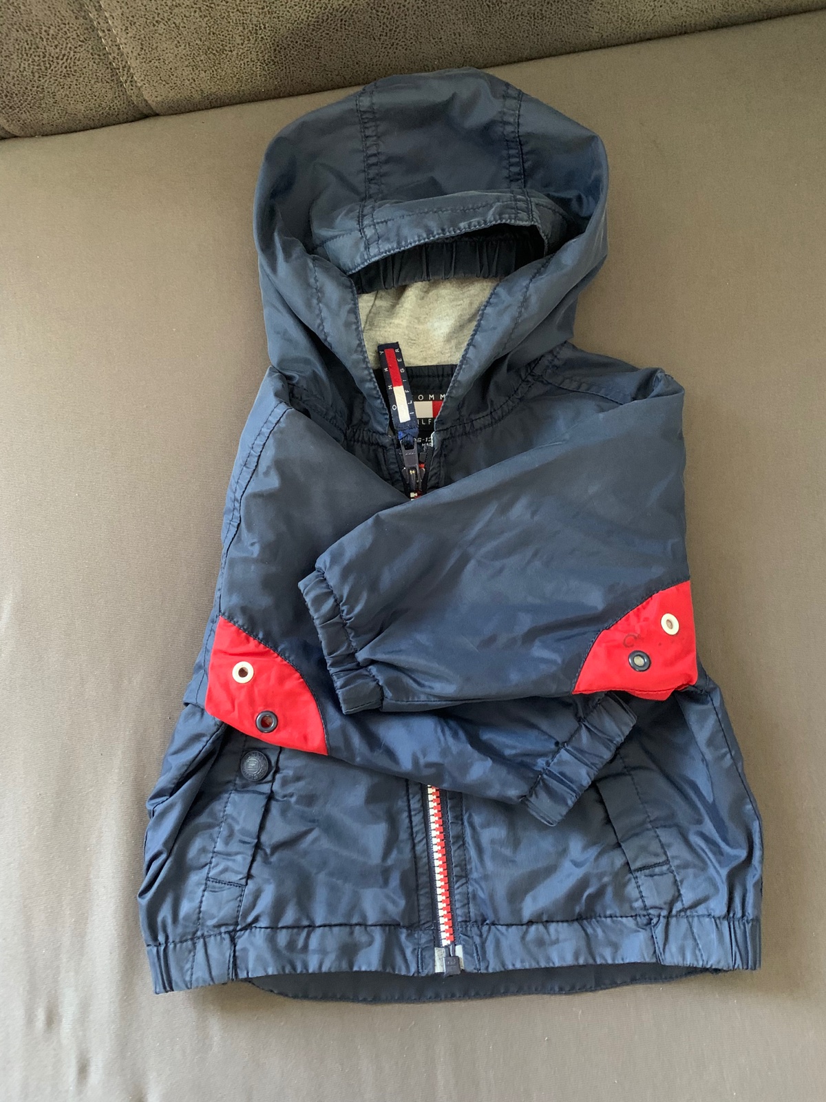 Tmavomodrá podšitá prechodná bunda Tommy Hilfiger, písaná veľkosť 6-12M. Málo nosená, dobrý stav. Jeden fliačik od farby na cvoku zo zadnej strany na rukáve. Ani netuším kedy sa to stalo. Viď. foto. Pri nosení nie je vidieť.
