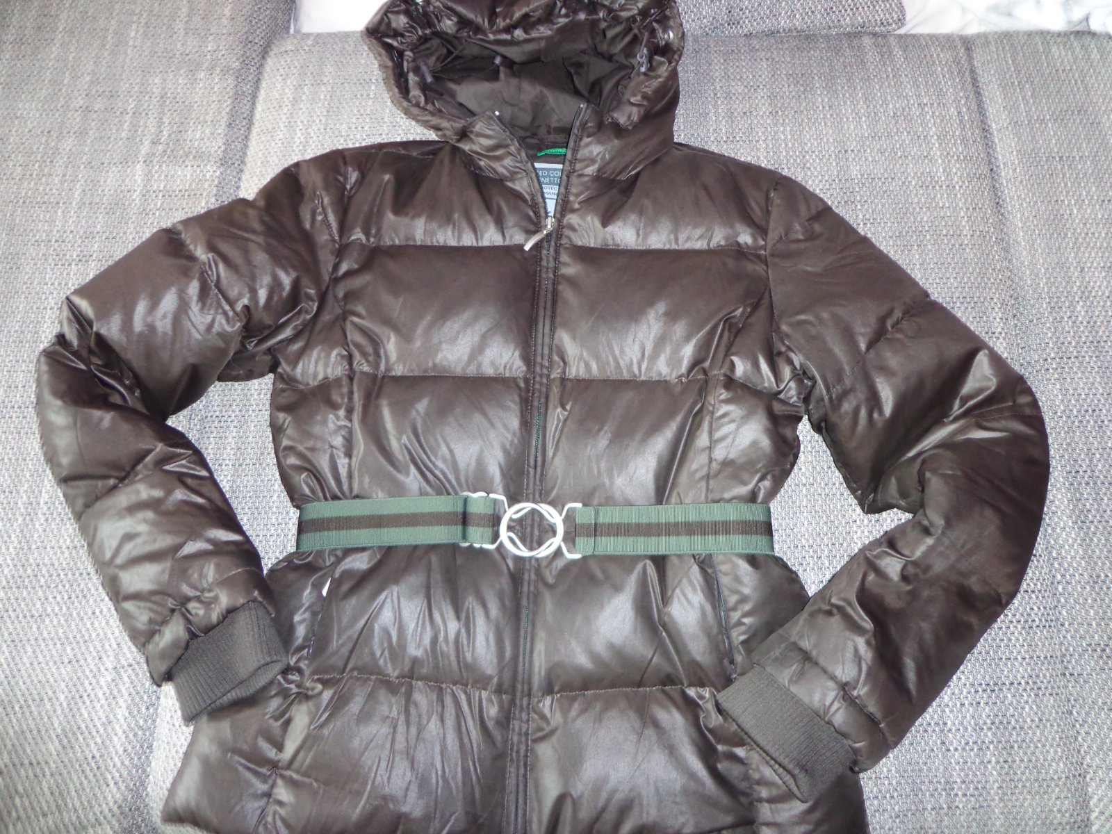 Krásna bunda zn. Benetton vo výbornom stave, dá sa nosit s páskom alebo bez neho, kapuca sa dá stiahnut, vel. písaná 48 sedí tak na M/L, najlepšie podla rozmerov dlzka od krku 69cm, šírka medzi pazuchami je 56cm, šírka rukáva v lakti cca 18cm, v páse tak 51 cm dá sa stiahnuť aj pružným páskom