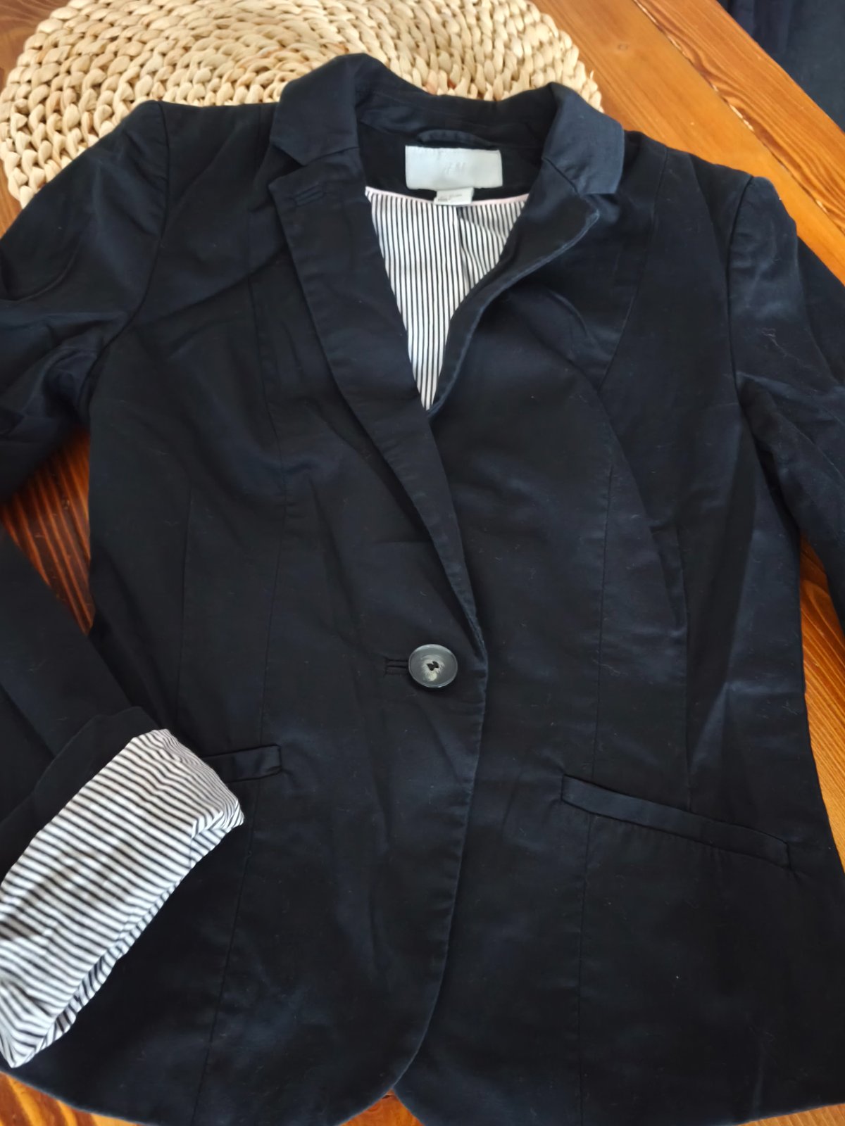 Predám čierne sako značky H&M, málo používané, veľkosť 34. Zapínanie je na gombík, má aj zipsovacie vrecka. V prípade záujmu ma kontaktujte.