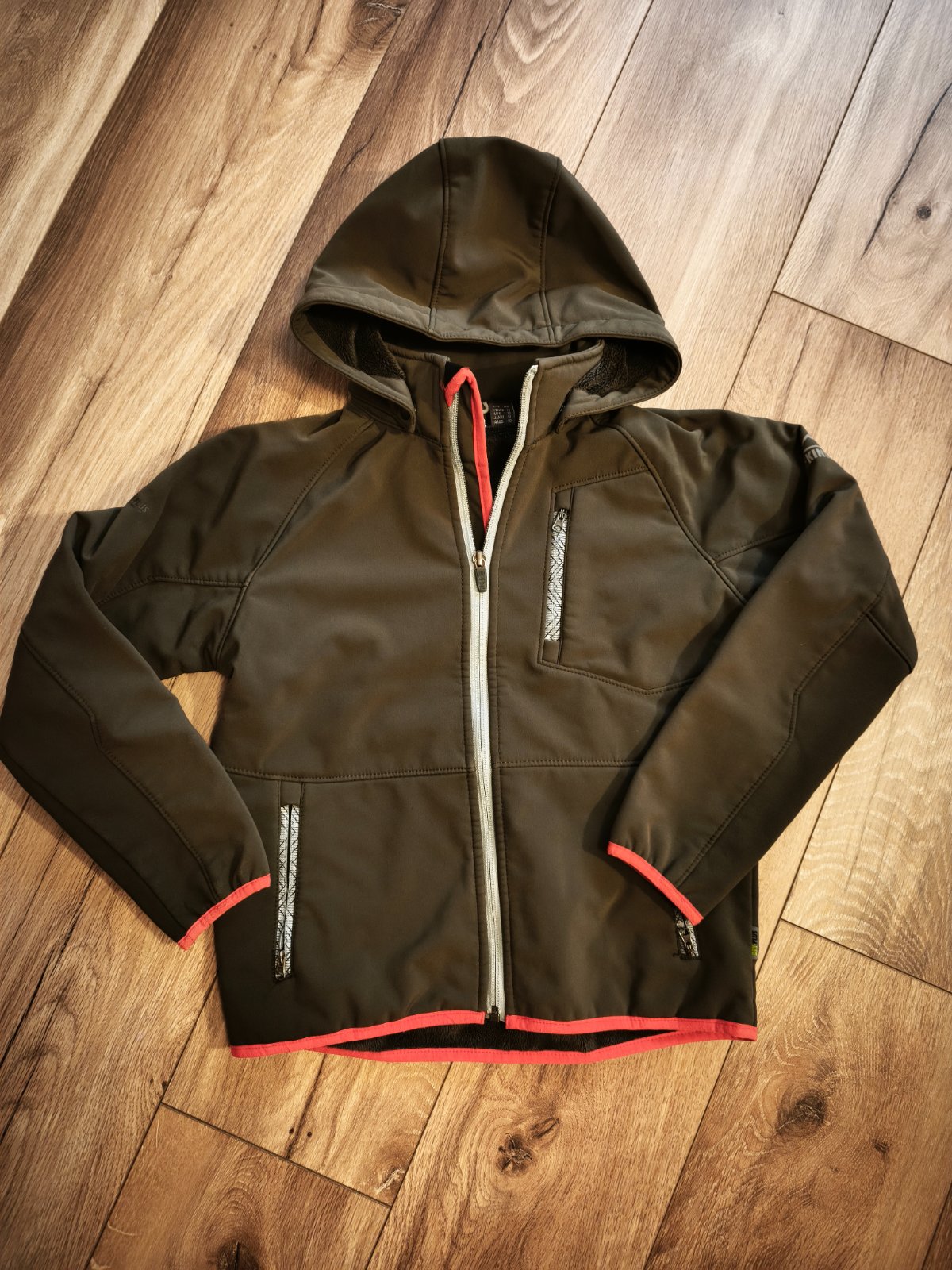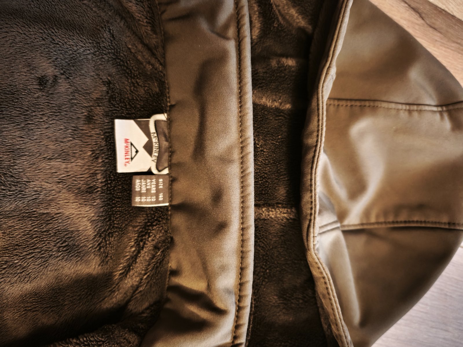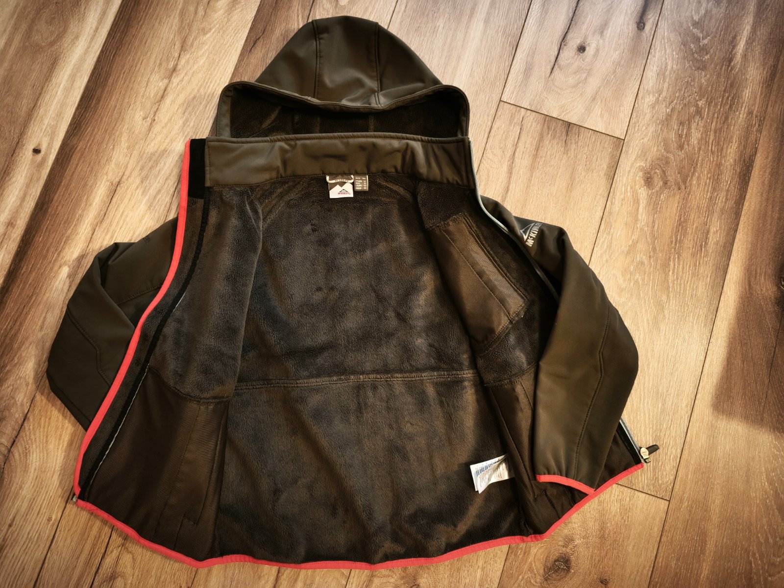 Bunda je vo veľmi dobrom stave, málo nosená, vnútro je zateplené flisom, kapucňa sa dá odopnut, je pripevnená cvokmi. Len malička chyba, je nefunkčný zips na jednom vrecku. Viď. foto. Nemá vplyv na funkčnosť.