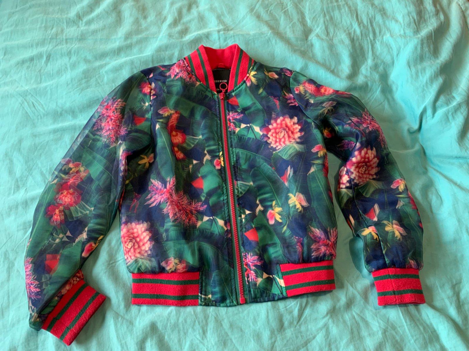 Krásna farebná, vrchná vrstva sieťovaná, vytvára zaujímavý optický efekt prelivu. Super stav, jedine na patentoch trošku vidno nosenie.