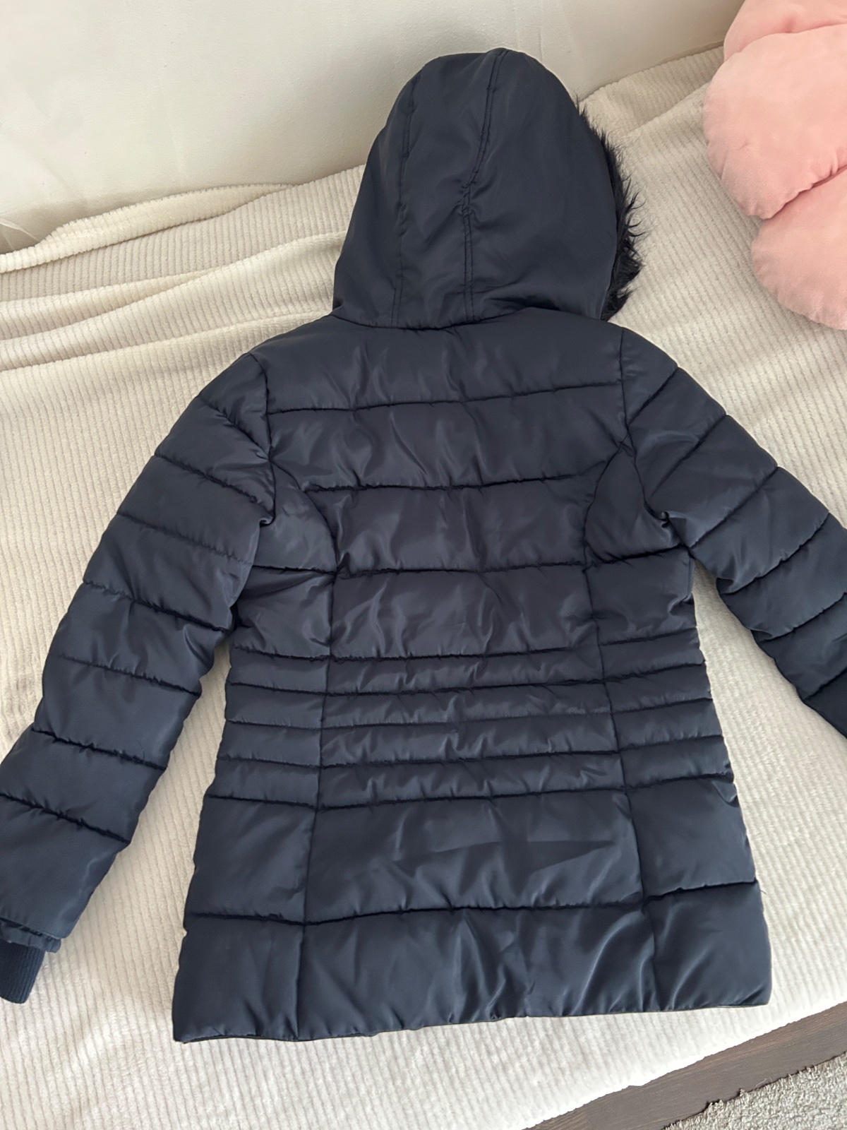 Predam malo nosenu tmavomodru zimnu bundu pre dievca zn. F&F, v. 146. Bez poskodenia. Cena 10,- eur.