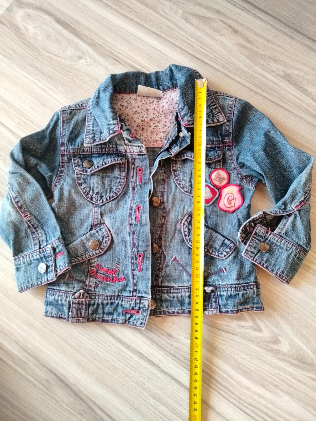 Krasna stylova Riflová bundička, pekny stav.
