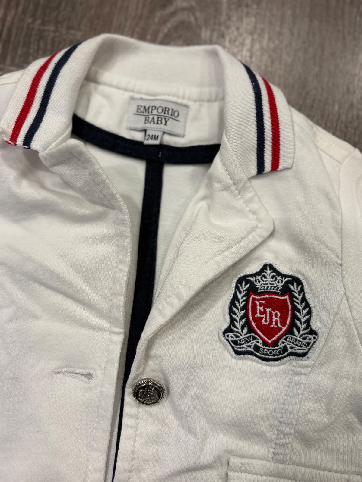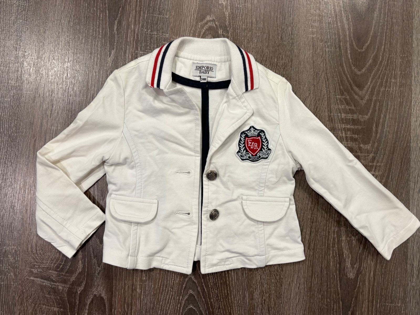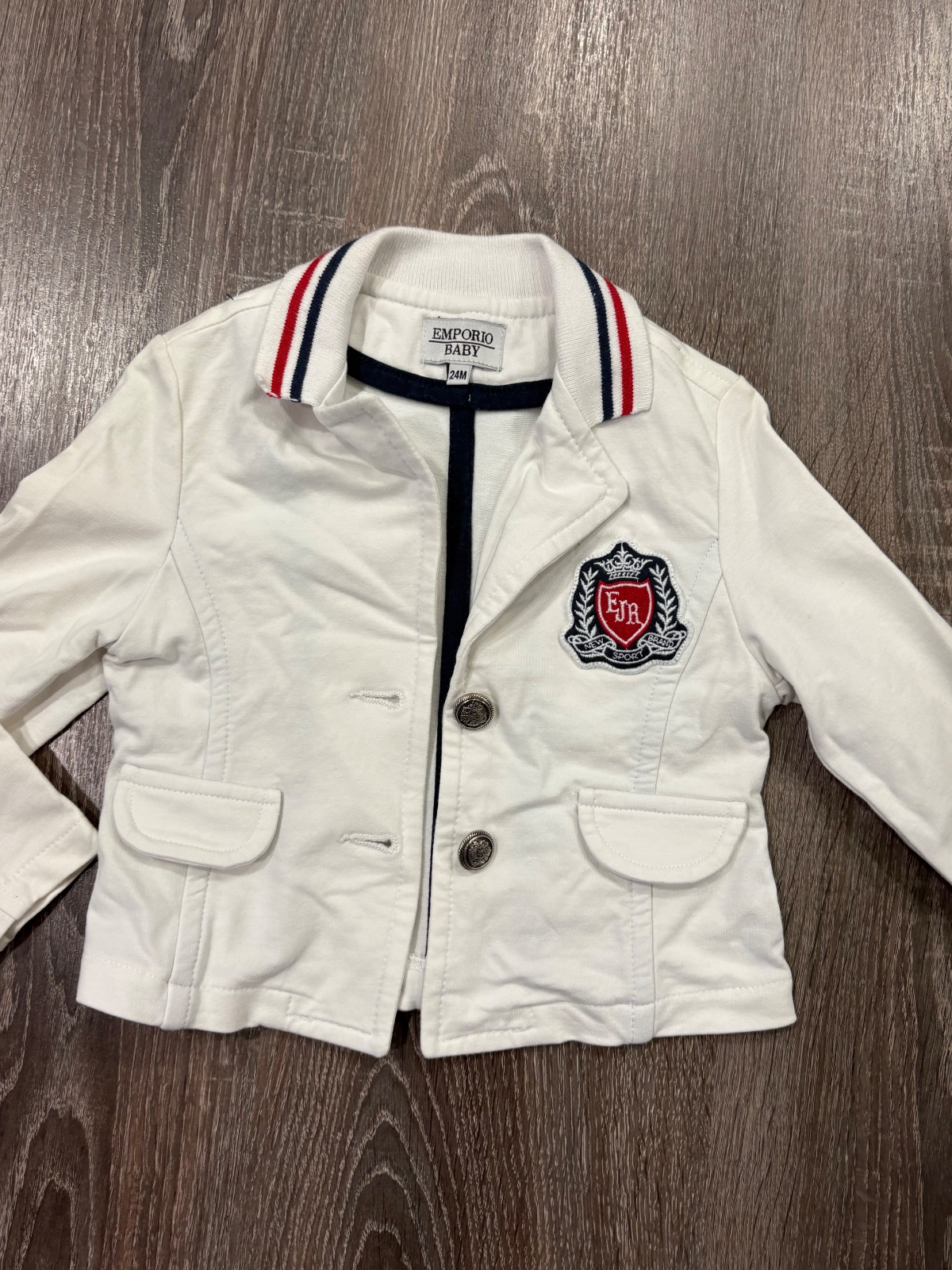 6.EMPORIO BABY krasne biele detské sako, bavlnene takže sa super nosí, štýlovo vyzera s conversami, velkost píšu 24 mesiacov, no nositelne od roka...super stav, bez poskodení, dlžka je 30cm a dlžka rukava od krku je 40cm