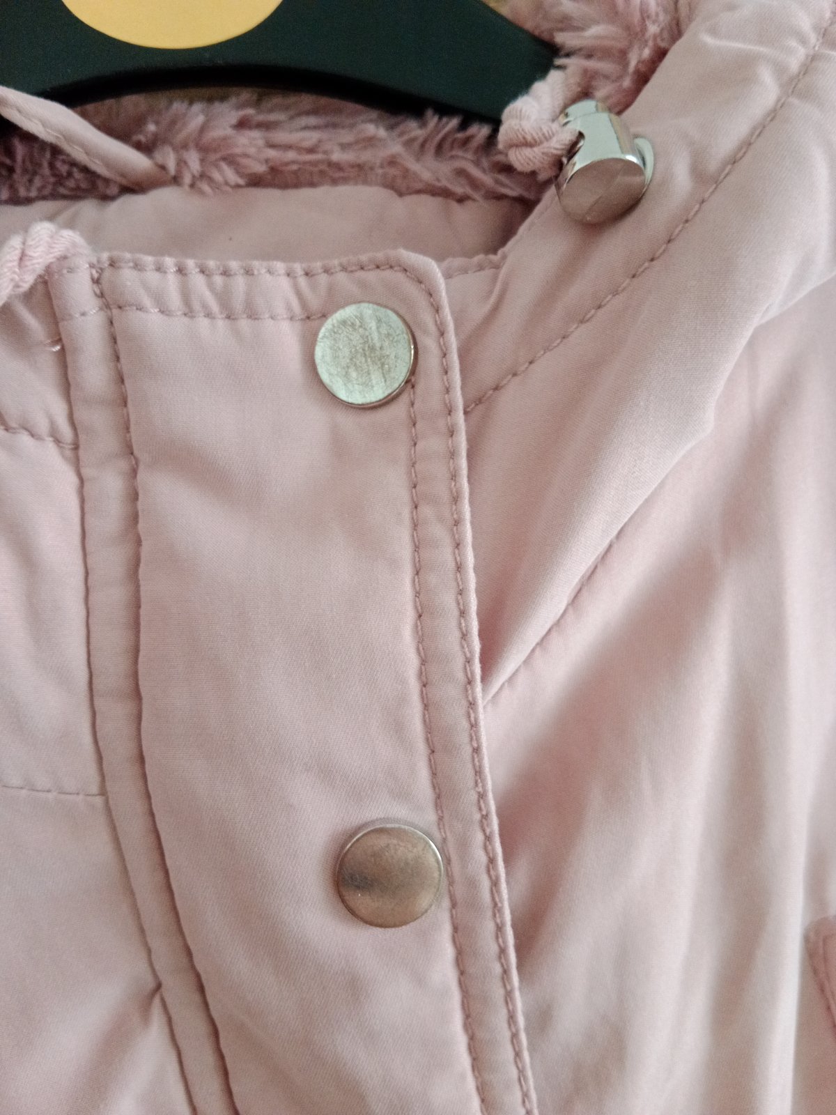 Bunda kúpená z druhej ruky, nesadla mi a preto posúvam ďalej, tak ako som kúpila. Je teplá, prechodná, aj na miernejšiu zimu. Gombíky vpredu na vreckách a hore pod krkom sú mierne ošúchané a našla som dierku na rukáve. Inak stále pekná. Je veľmi jemná, príjemná na dotyk. Ak treba, premeriam.