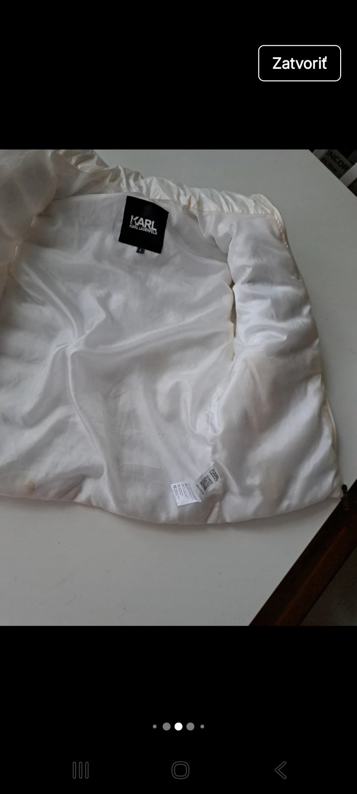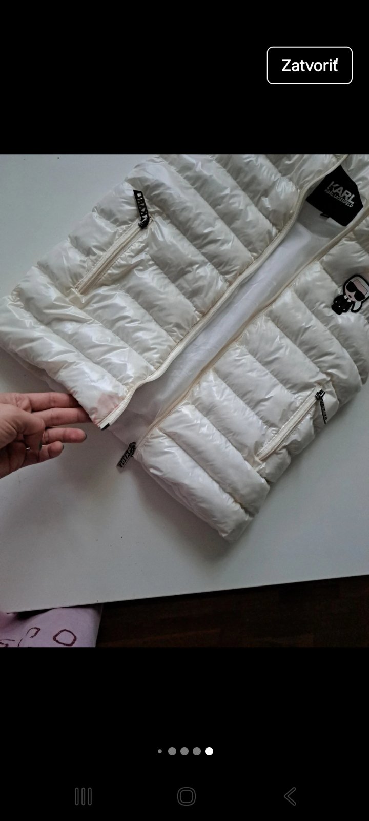 Par krát oblečená, sedí na 8-9 rokov je hrubšia, dole pri zipse bledoruzovy fliacik neskúšala som čistiť, neni to ano vidieť. Cena zohľadnena stala necelých 150€ myslim ešte po zľave.