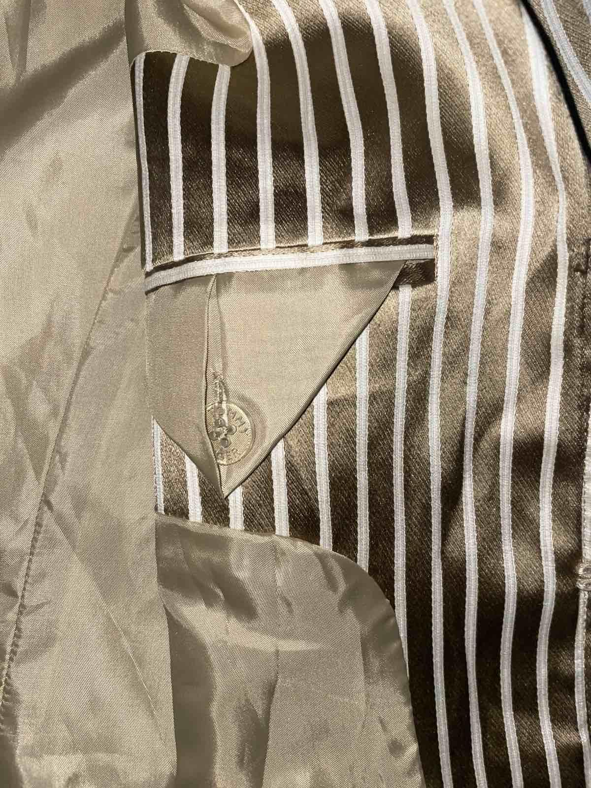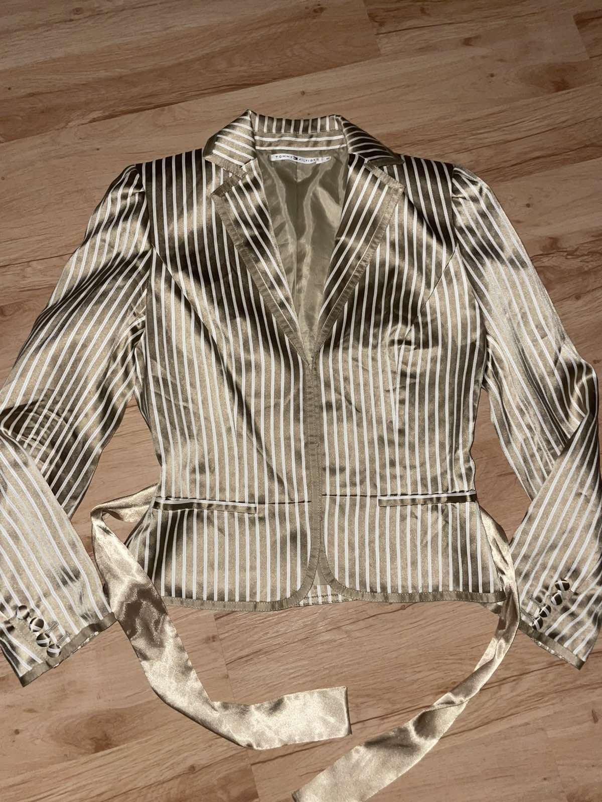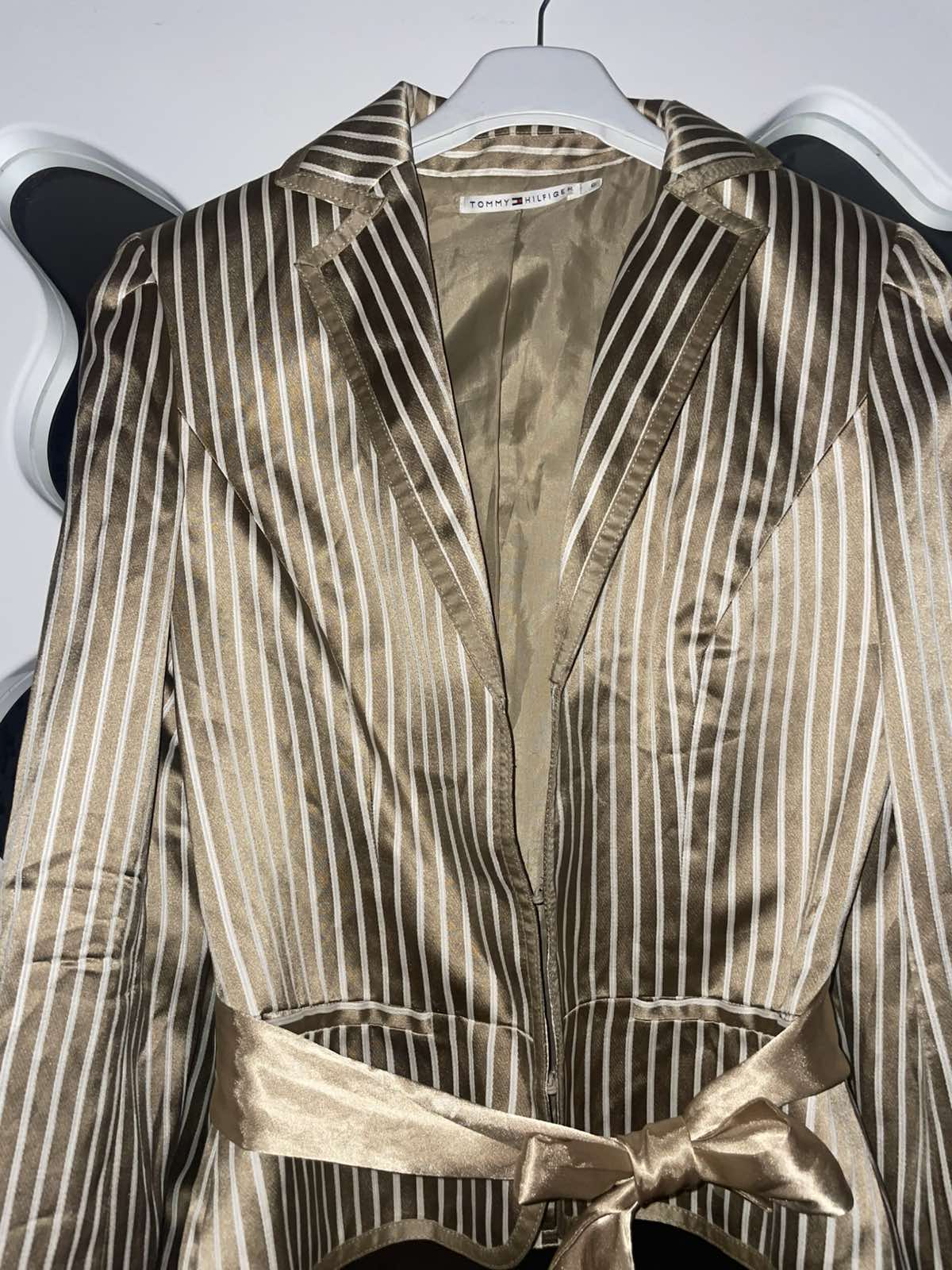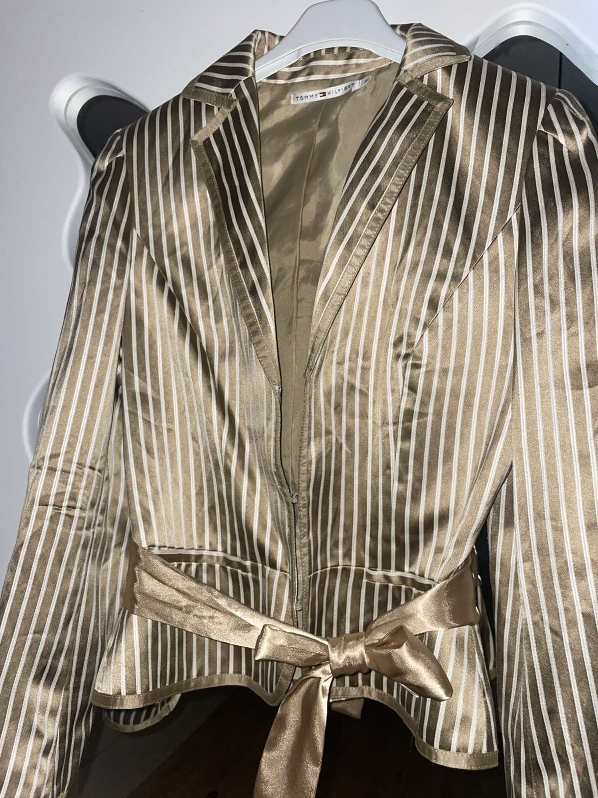 Nádherné, kvalitne vypracované, béžovo-hnedo-zlate, hodvábny satén, uvazuje sa vpredu alebo vzadu, veľkosť US 6,sedí na S, šírka pod pazuchami cca 45-46 cm, dĺžka 54 cm