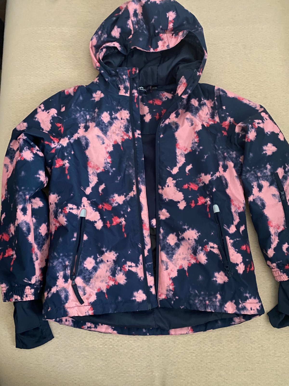 Nosena bunda,veľkosť 134/140. Reflexné prvky, rukávy sa dajú natiahnuť cez prst,aby nebola zima na ruky